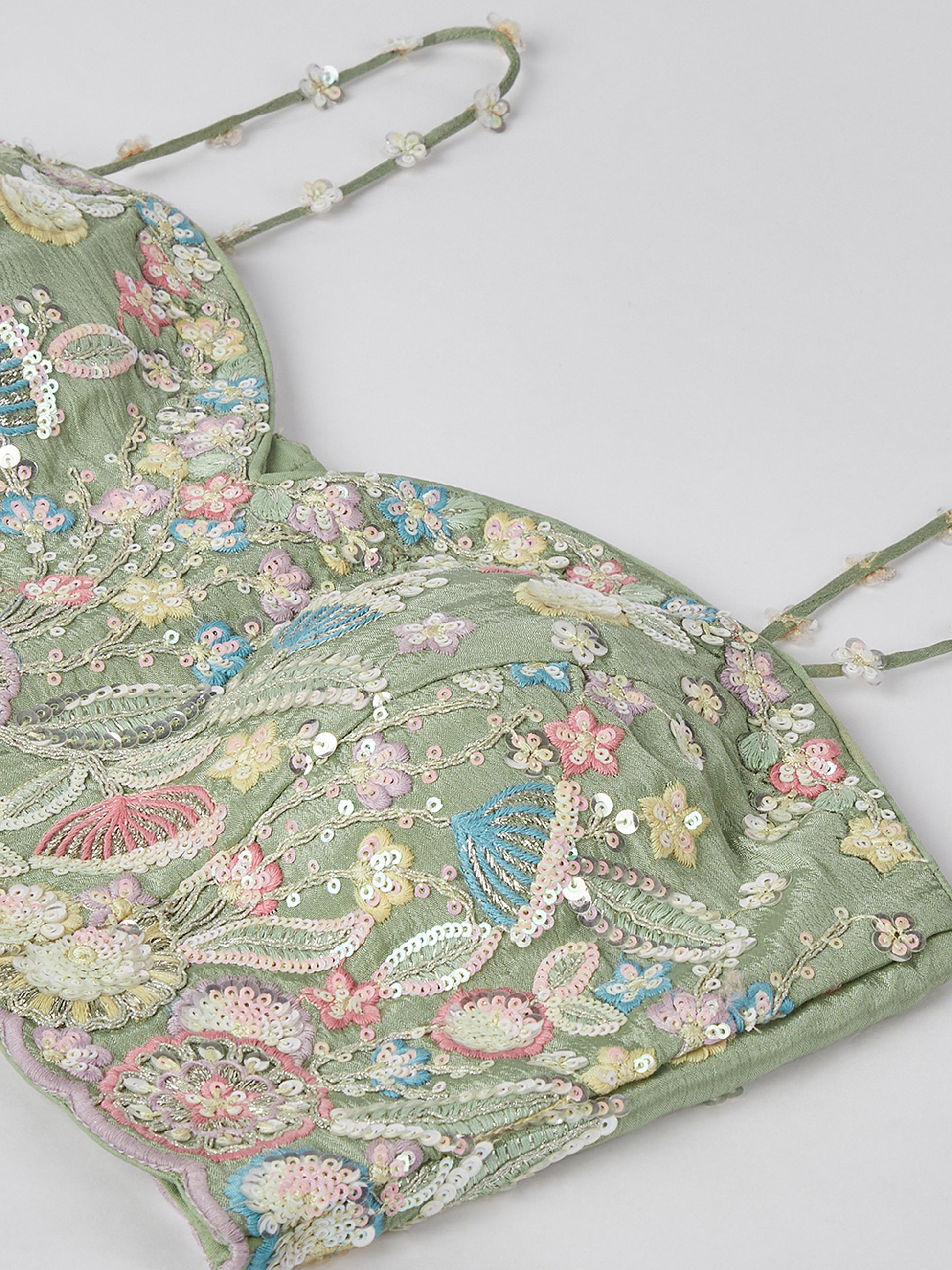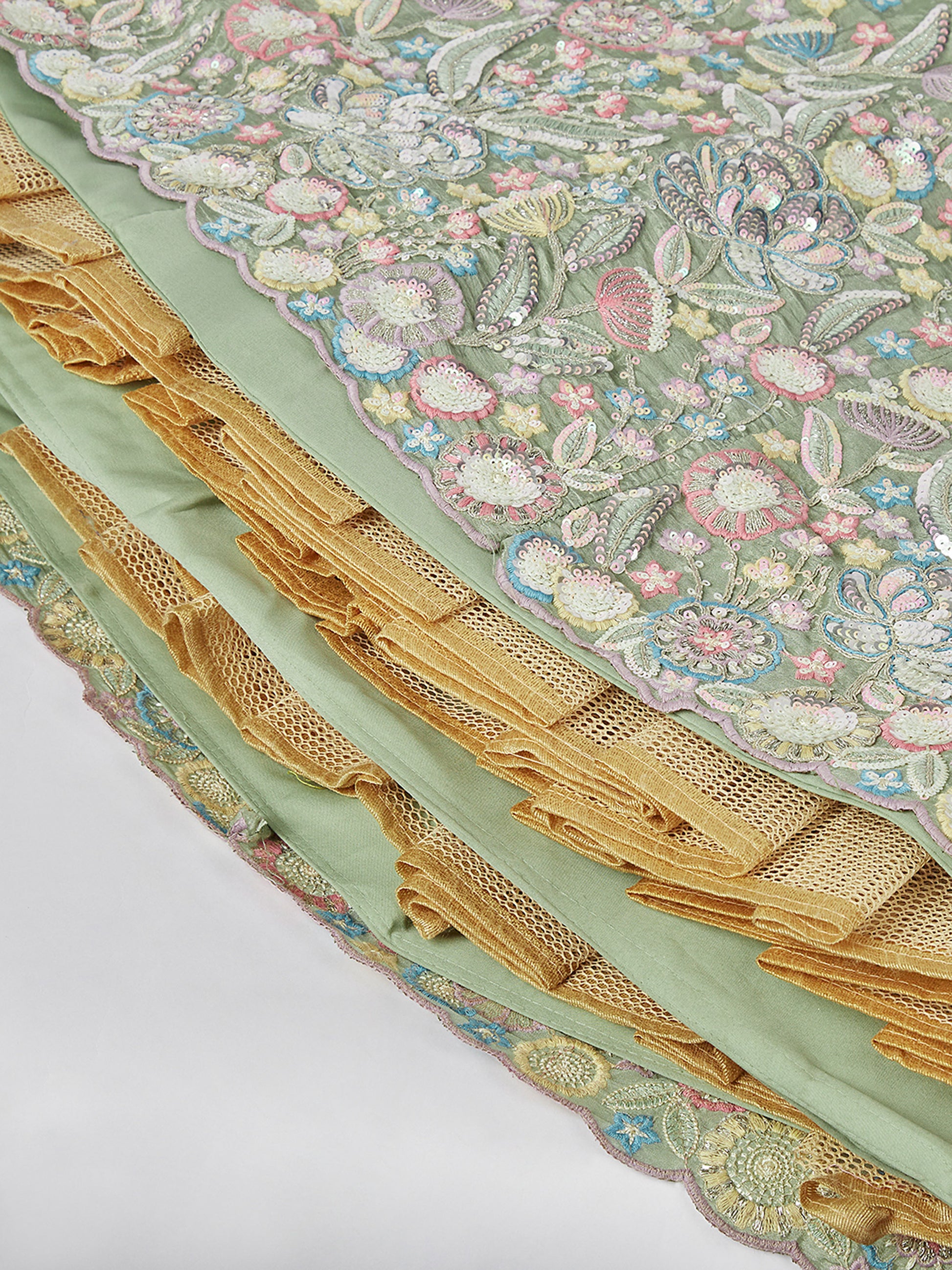 Lime green Chiffon Sequins and thread embroidery Lehenga