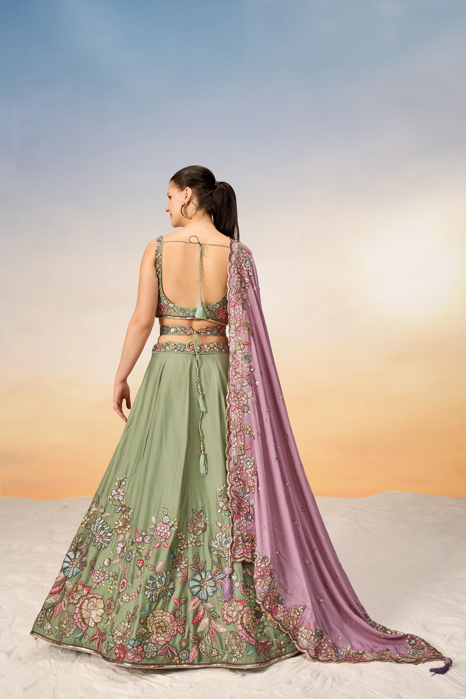 Lime Green Pure Georgette Mirror with Sequins embroidery Semi-Stitched Lehenga choli & Dupatta