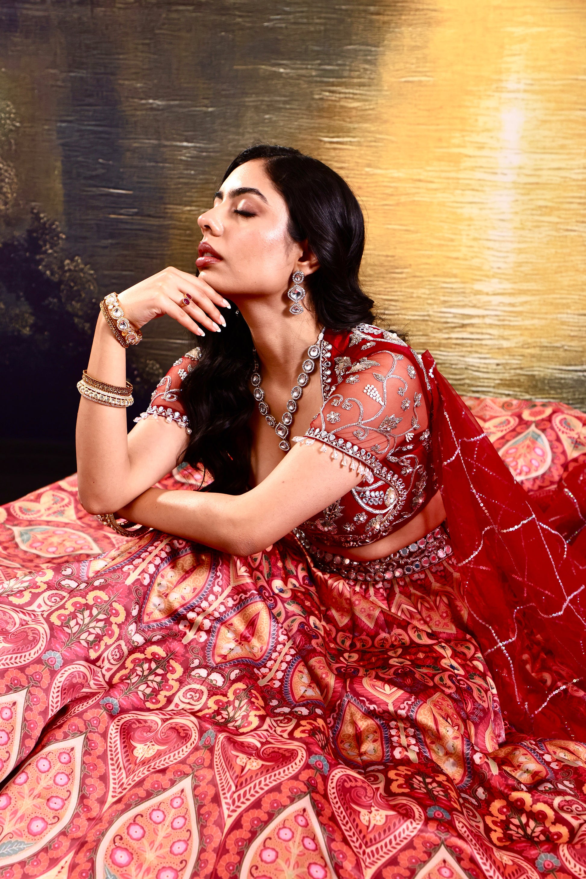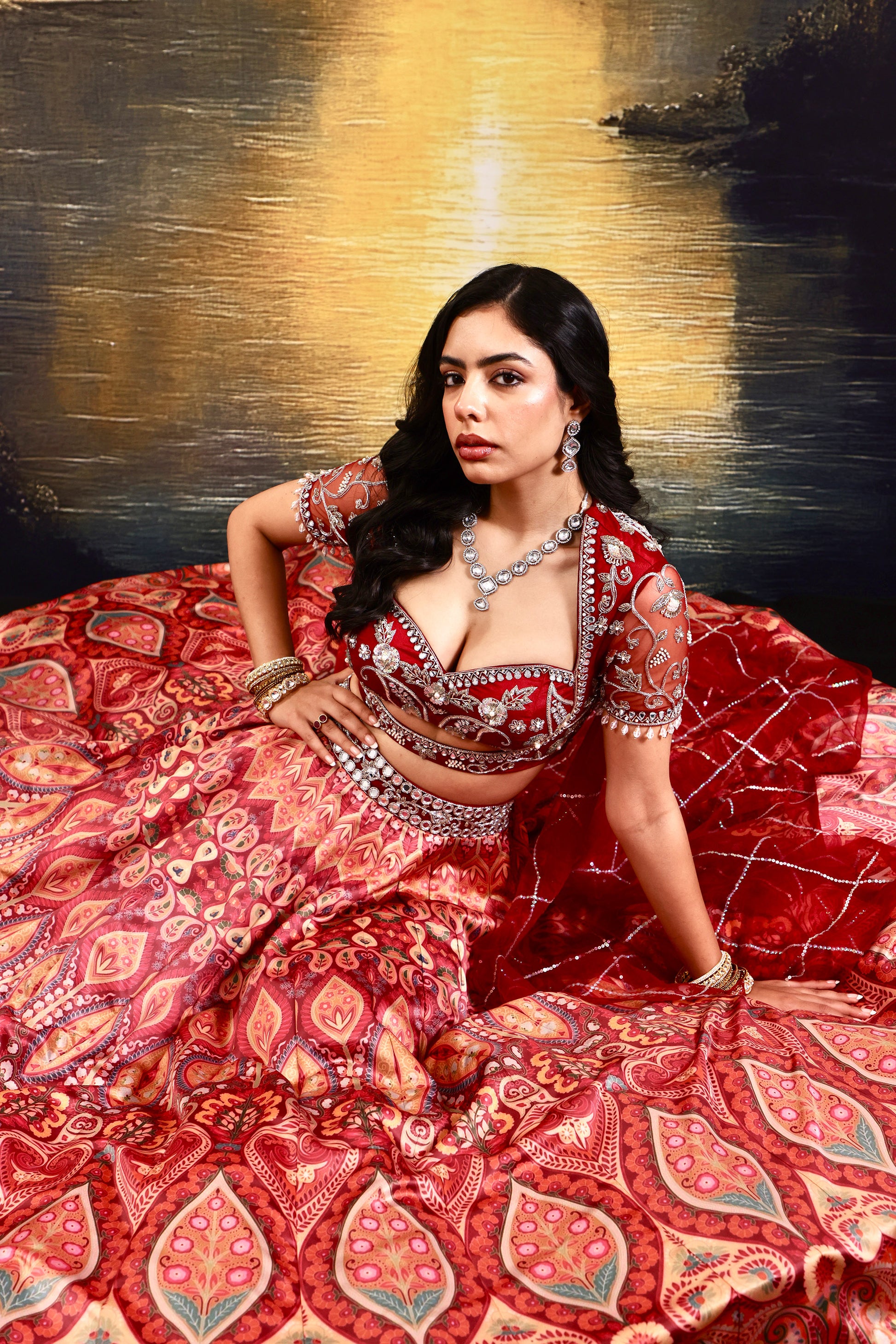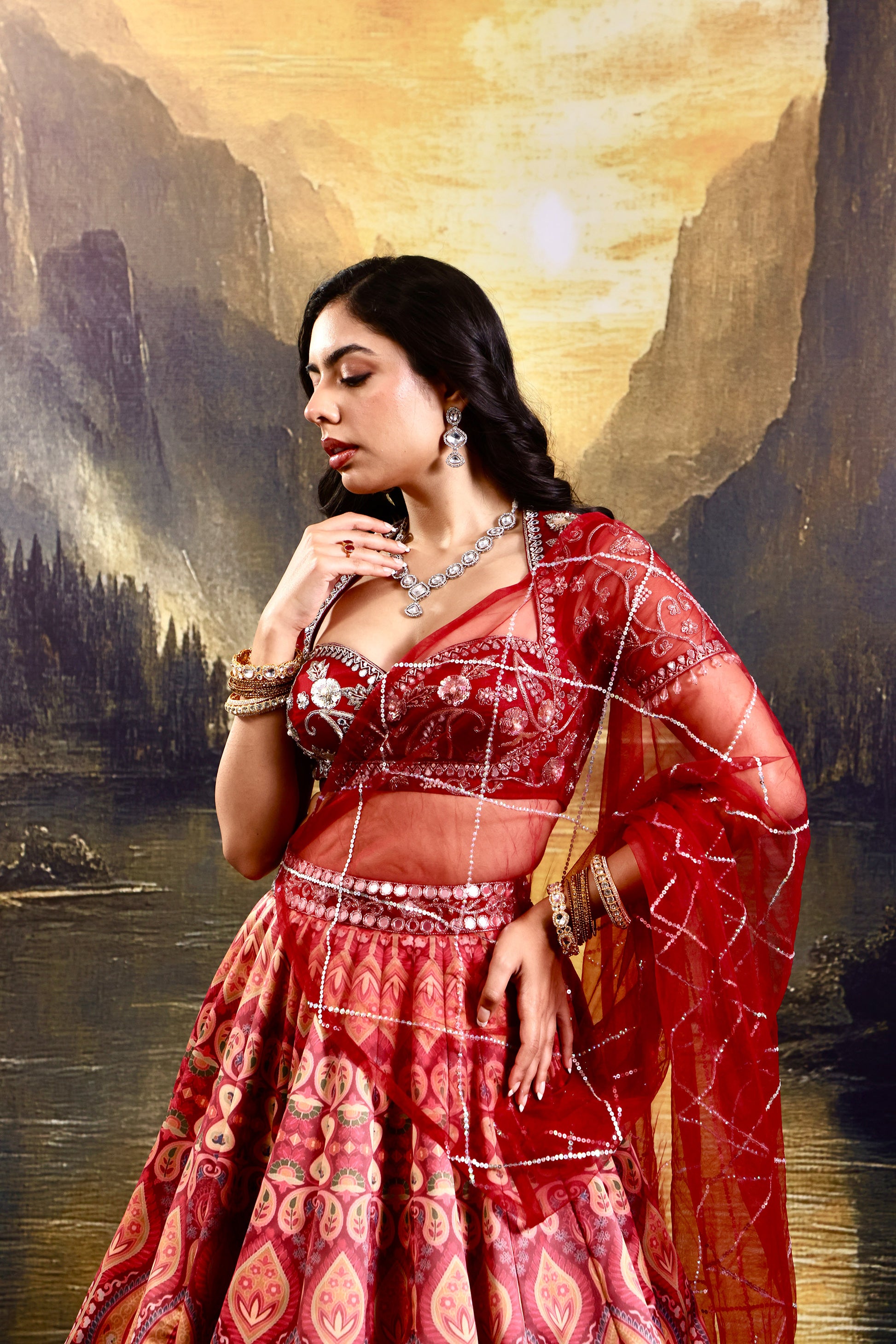 Fabric : Blouse : net lehenga : silk satin dupatta: net lining: shantoon
