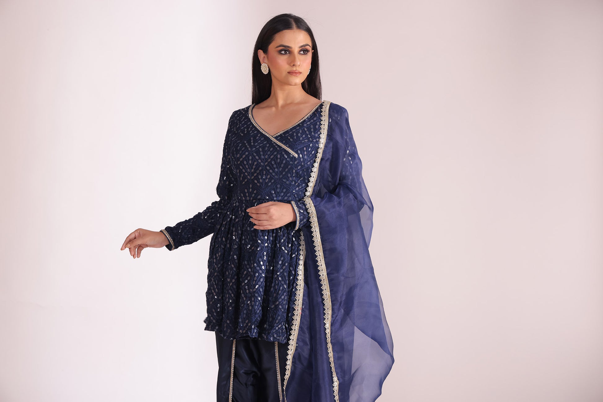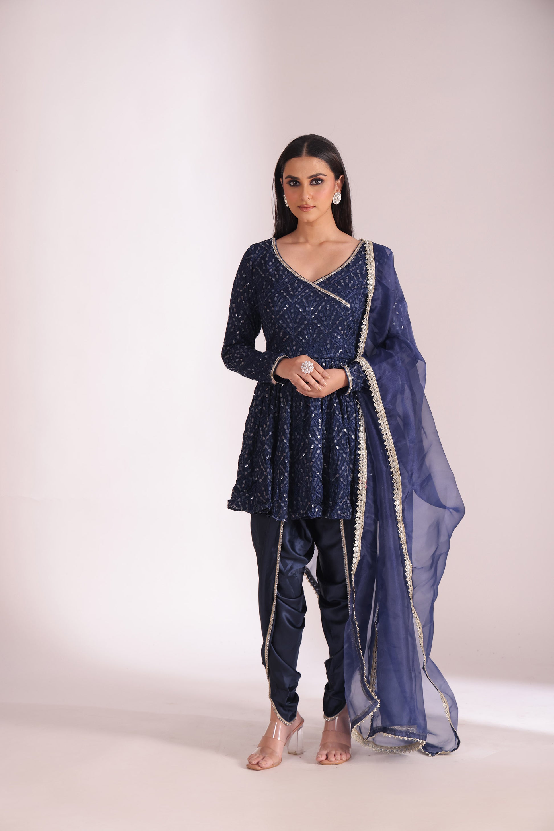 Mastani Navy Blue Embroidered Georgette Peplum Angrakha And Dhoti With Dupatta