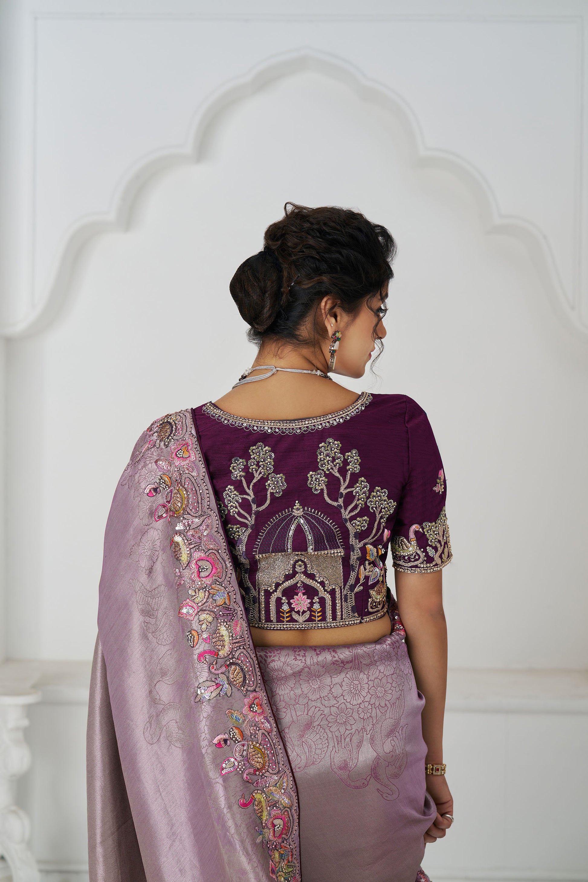 Mauve Color Reception Saree With Multi-thread And Sequins Embroidery