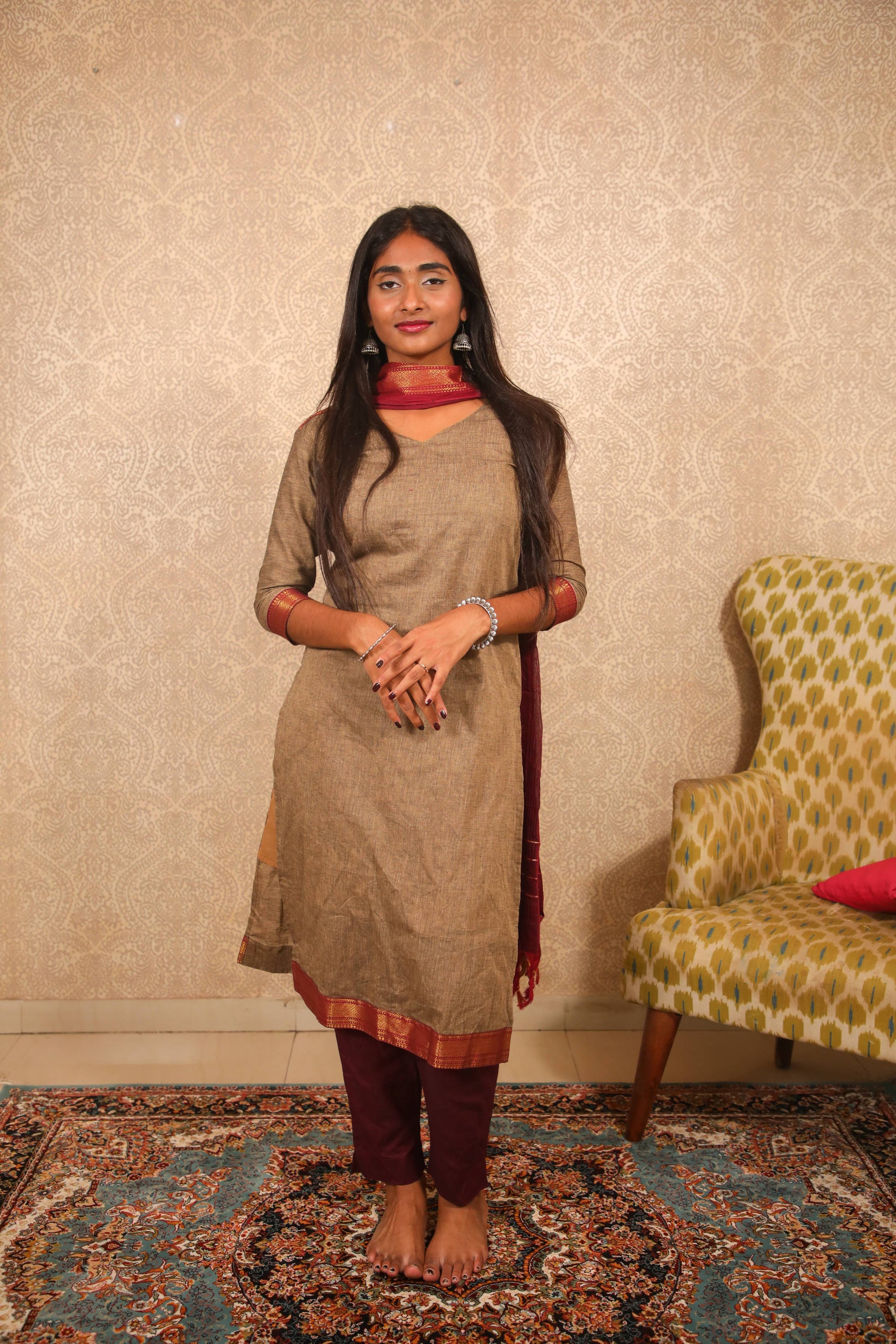 Maya - Kurti Set in Mangalagiri cotton in Beige Color
