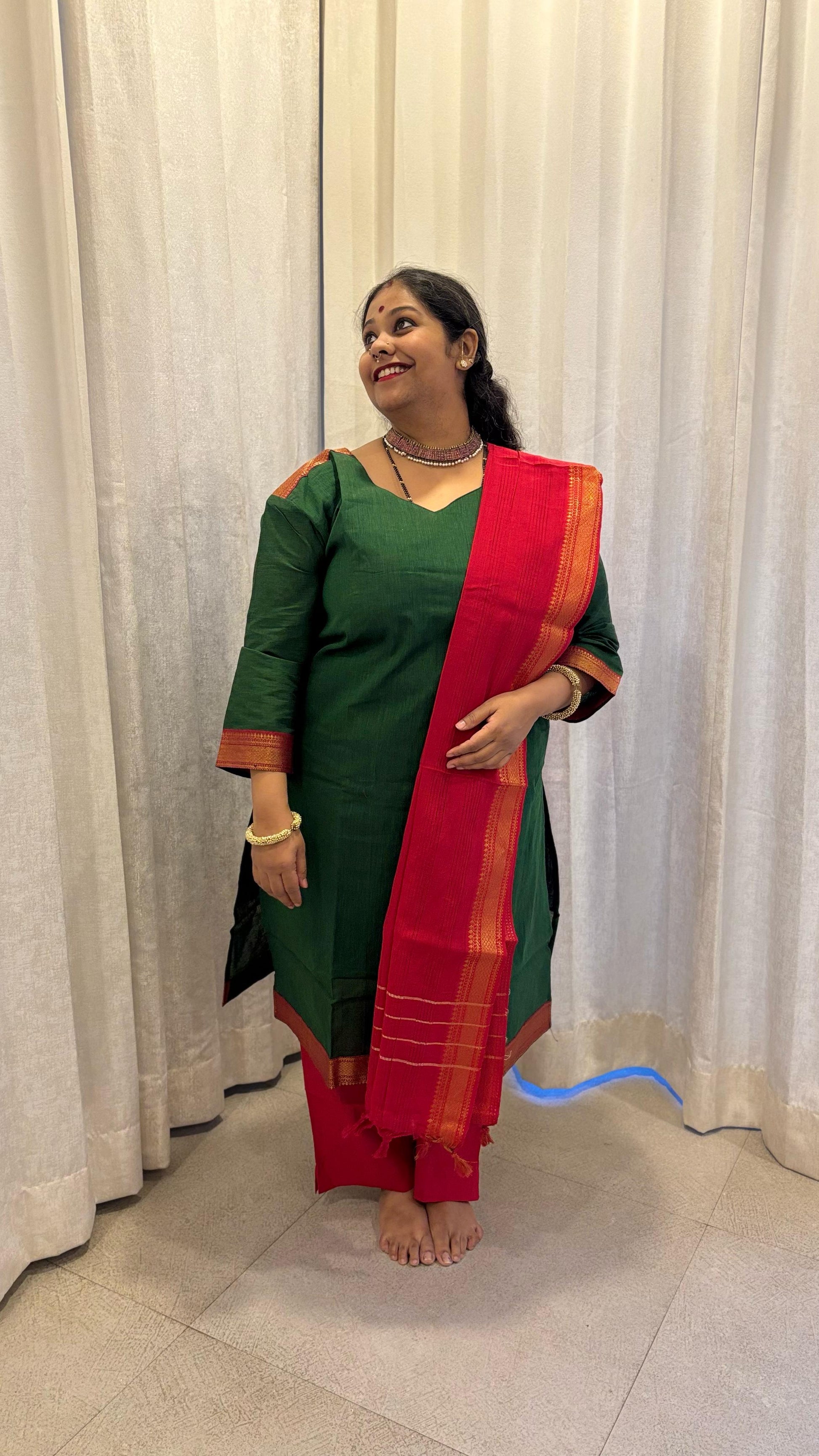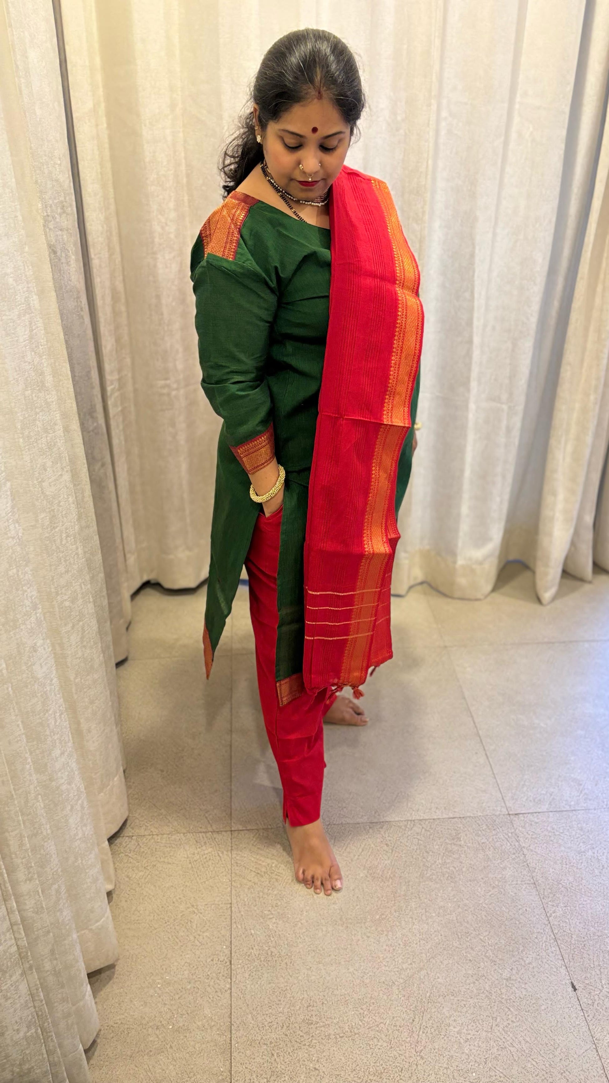 Maya - Kurti Set in Mangalagiri cotton in Green Color