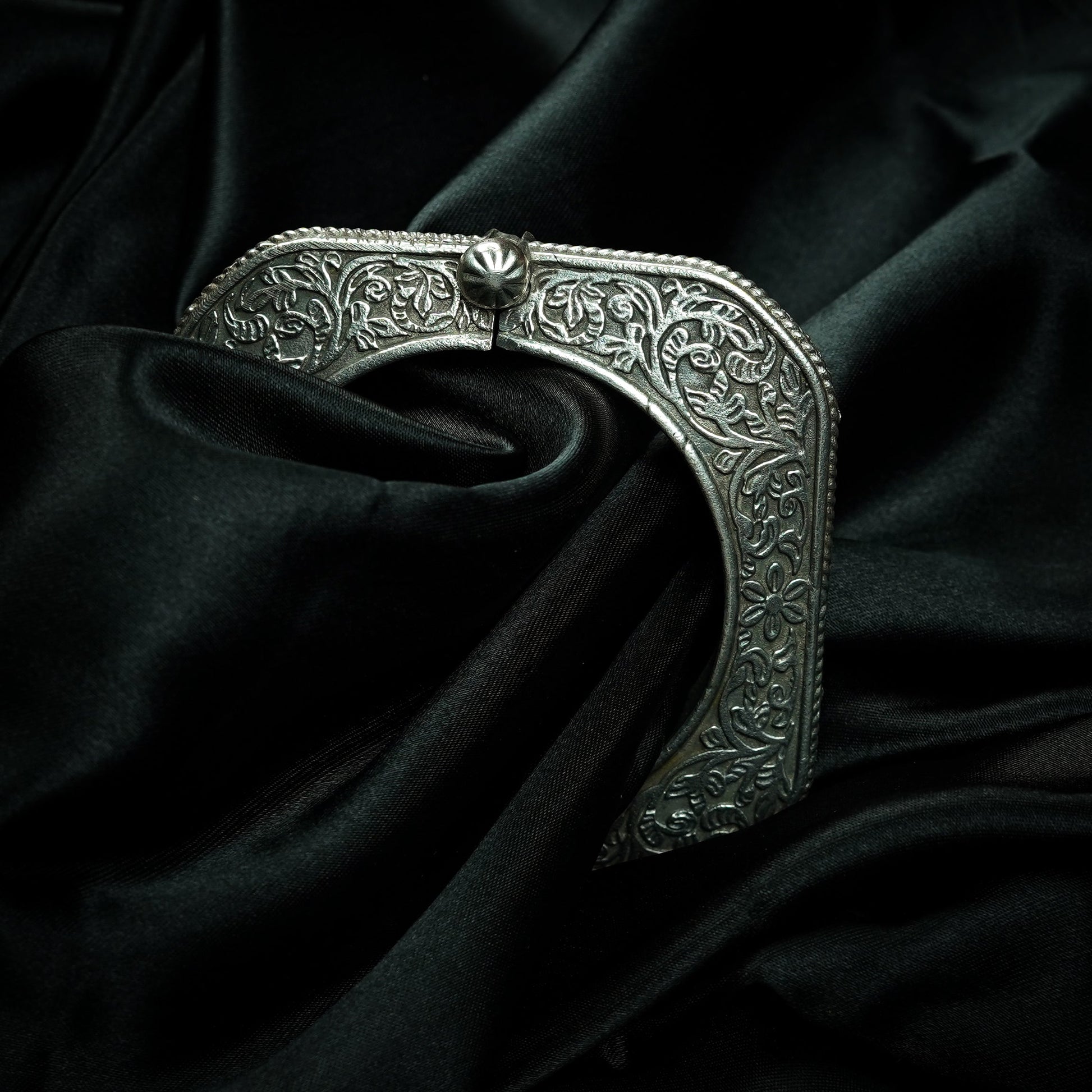 Embrace the perfect blend of tradition and modernity with the Moksha Adjustable Chaandi Kada from Zevar Club. Crafted from high-quality silver (chaandi), this kada features a unique adjustable design, offering both comfort and style. The intricate detailing on the kada reflects the craftsmanship of skilled artisans, while the adjustable feature ensures a perfect fit for every wrist.