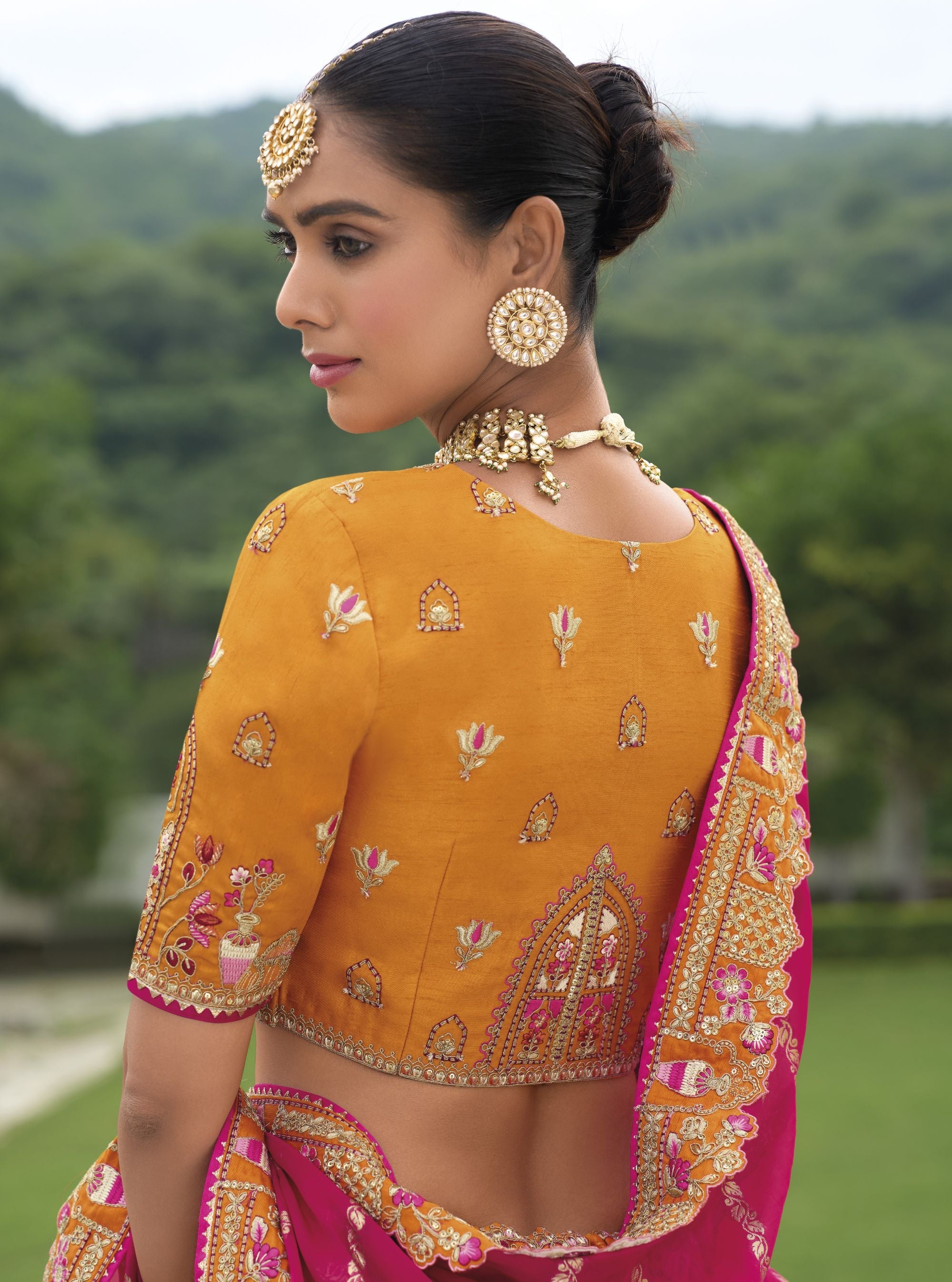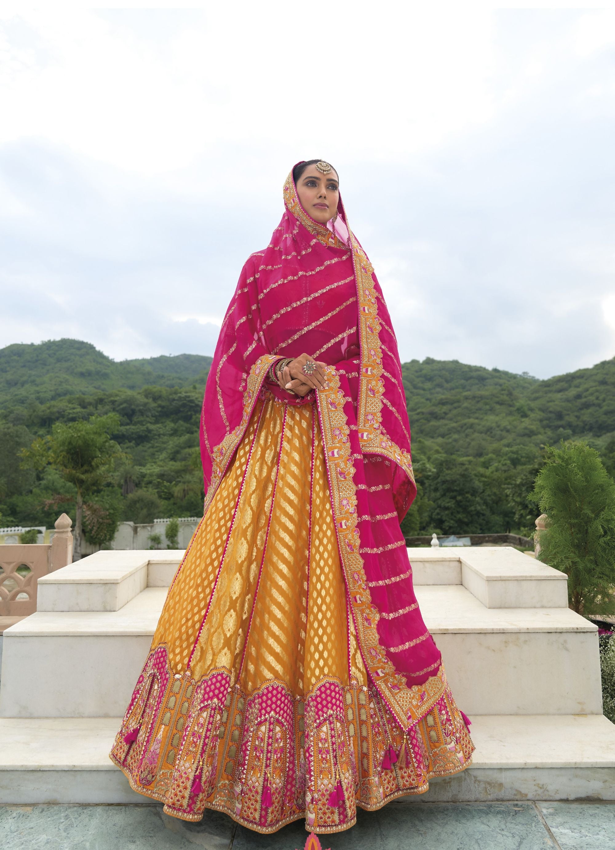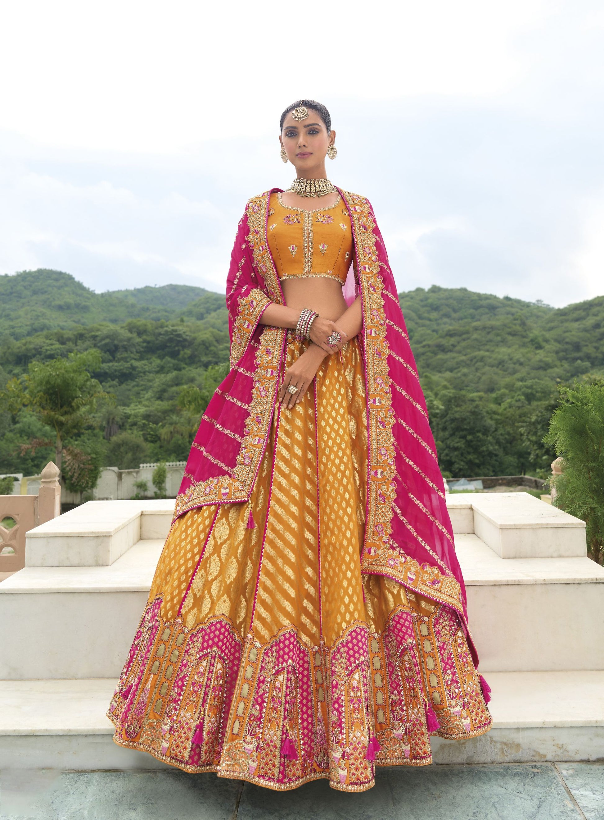Mustard Khatli and Sequence Embroidery Silk Bridal Lehenga