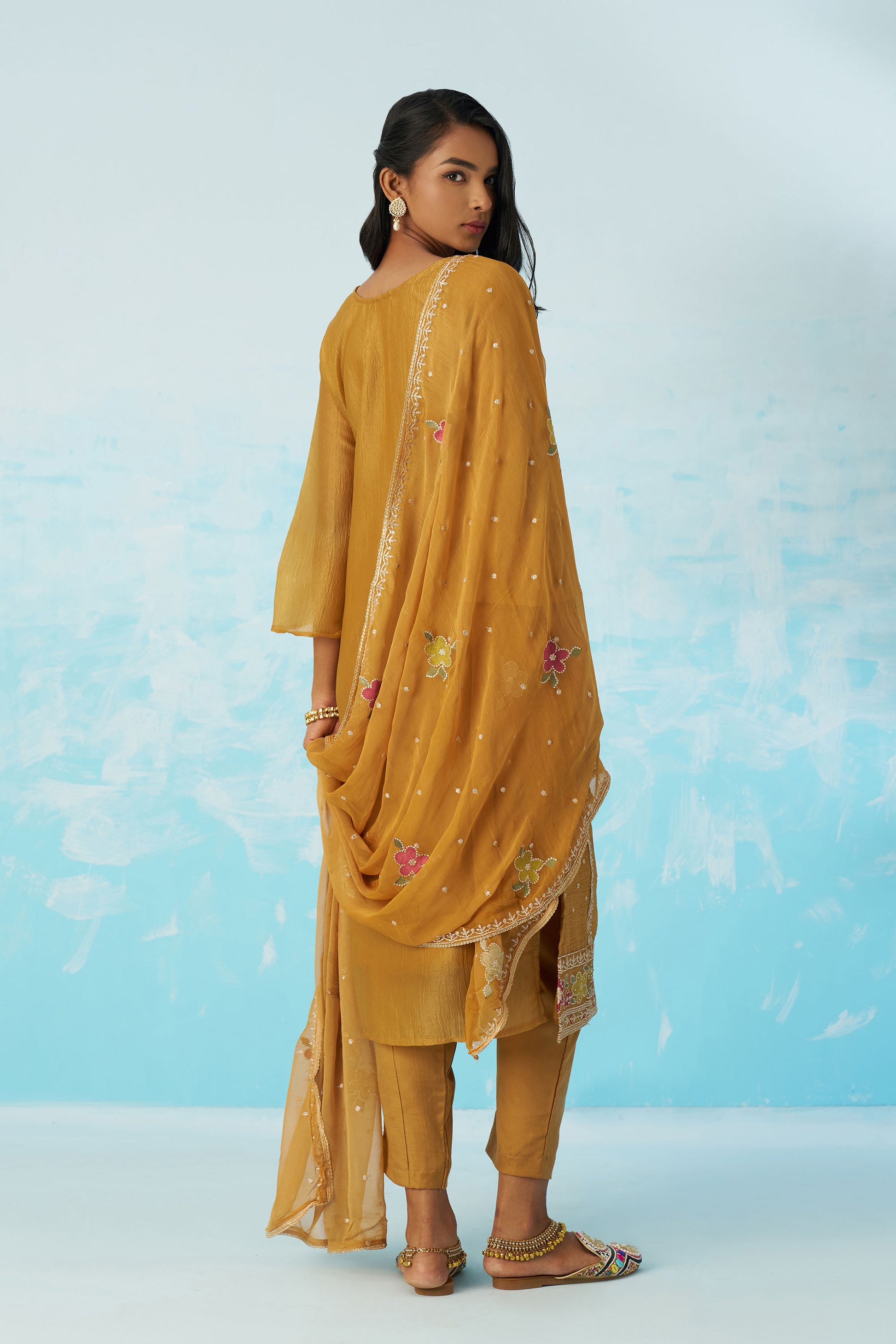 Mustard Yellow Fancy Crush Thread Work Casual Kurta Set