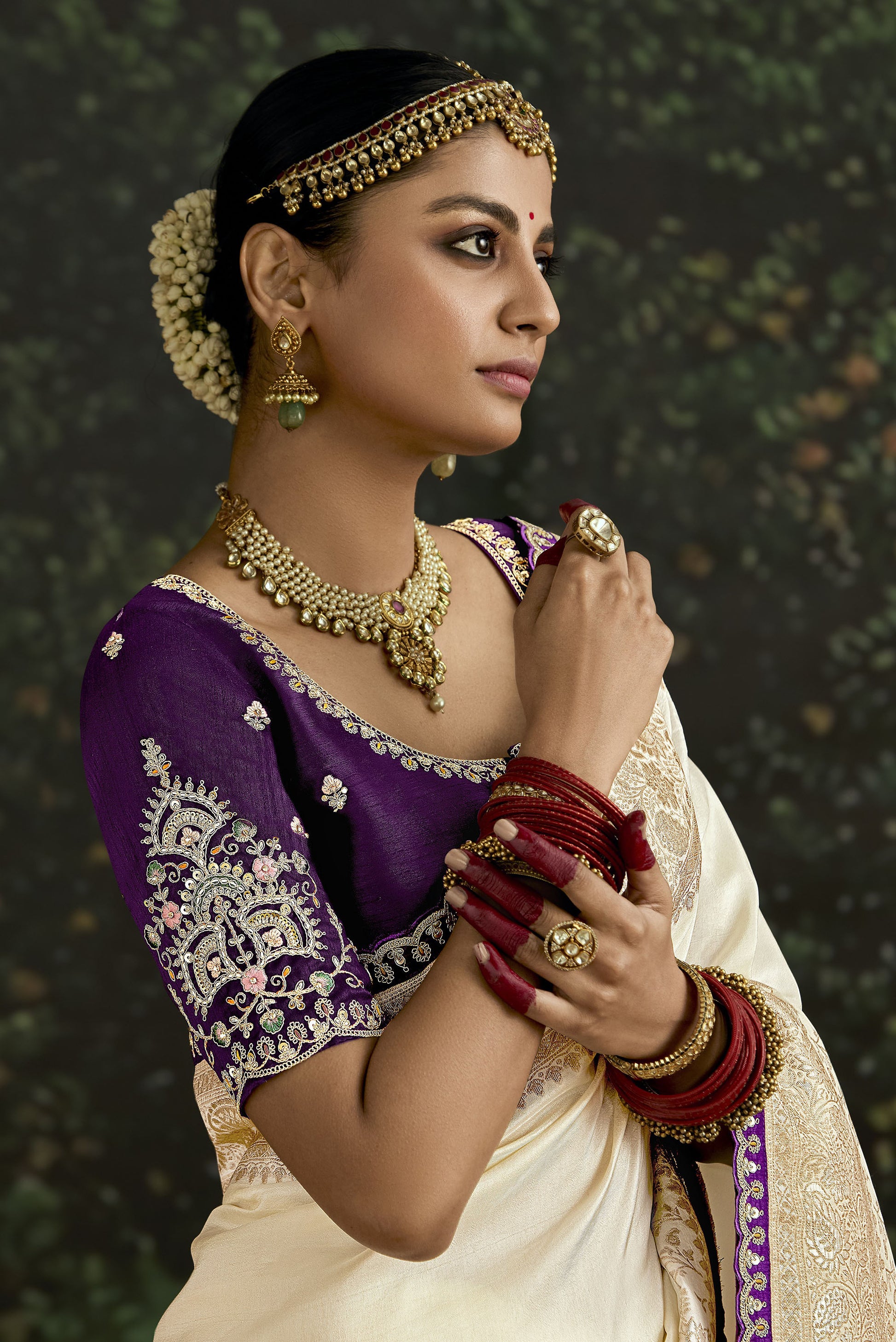 Off White Dola Silk Sequins Emboidery Baisaa Festive Saree