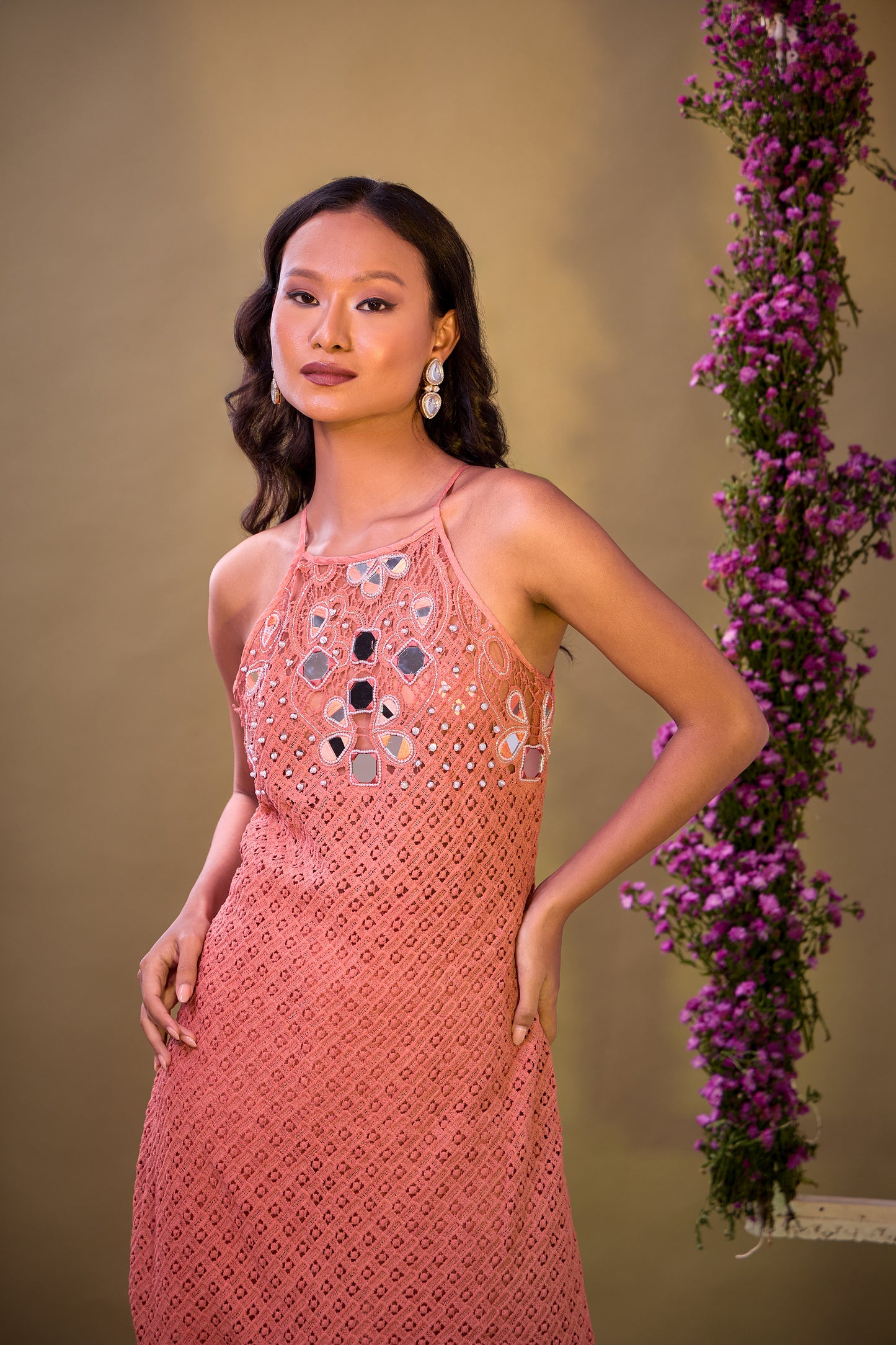 Old Rose Pink Mirror work embroidered Designer Suit Set