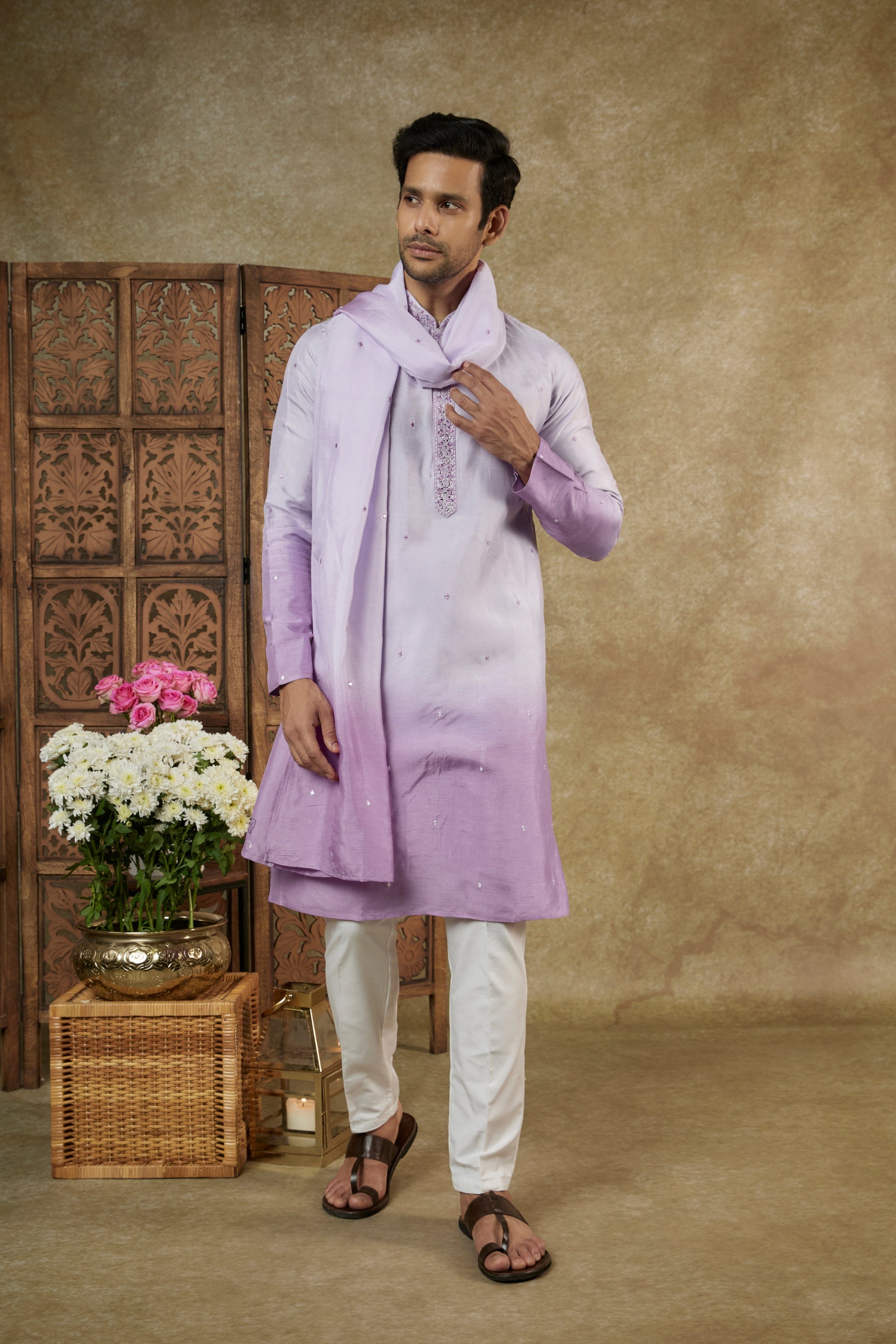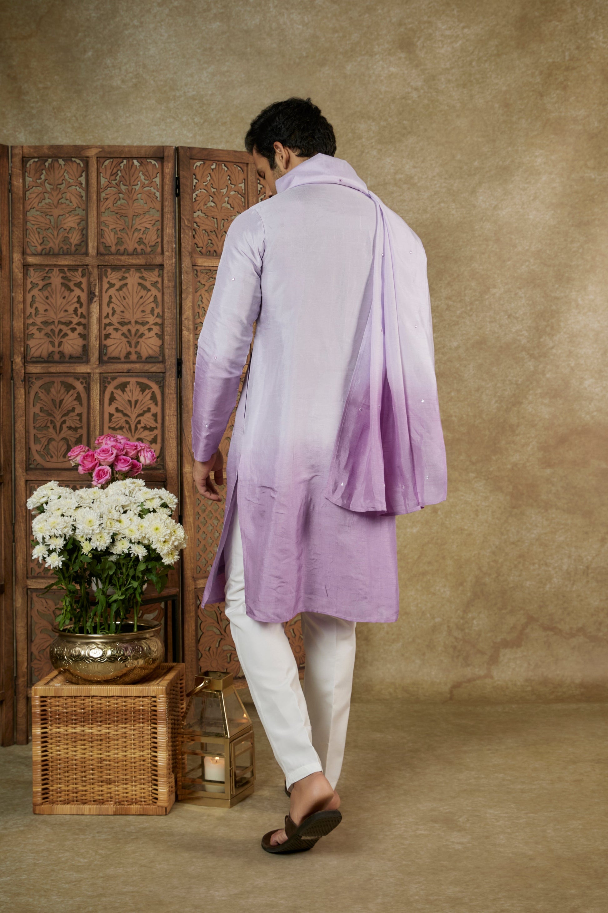 OMBRE WHITE LILAC MIRROR AND RESHAM SILK KURTA SET