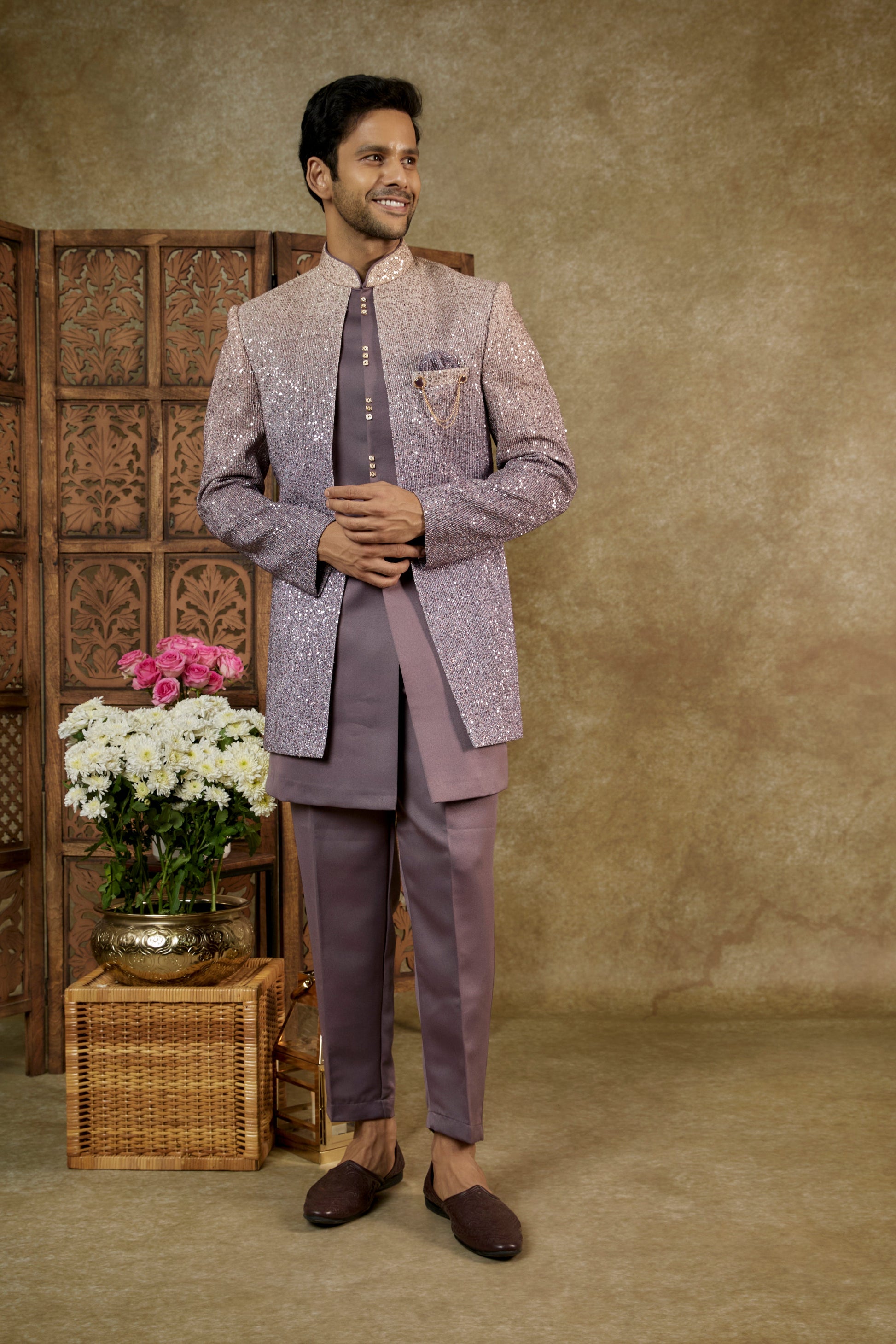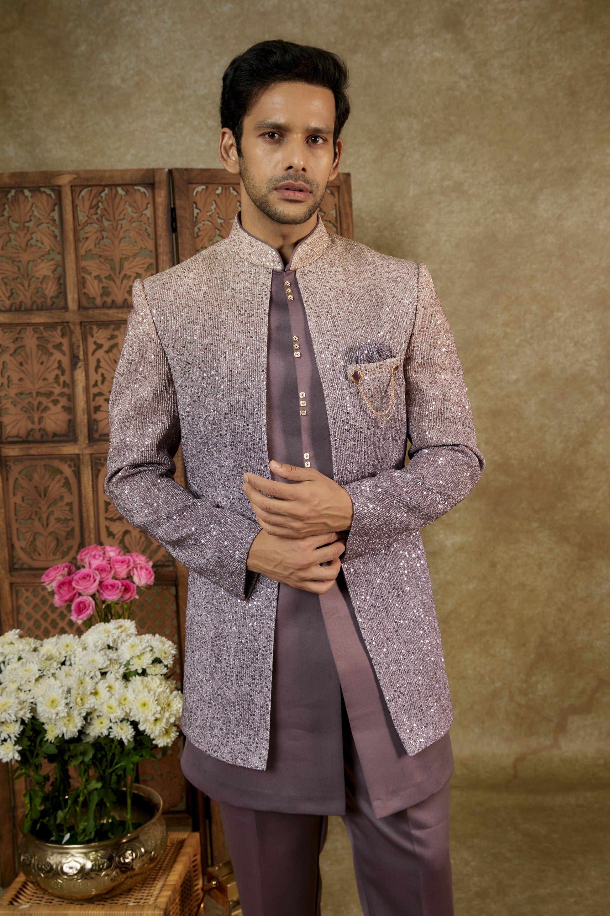 ONION PINK SEQUINNED SILK OPEN INDOWESTERN SET