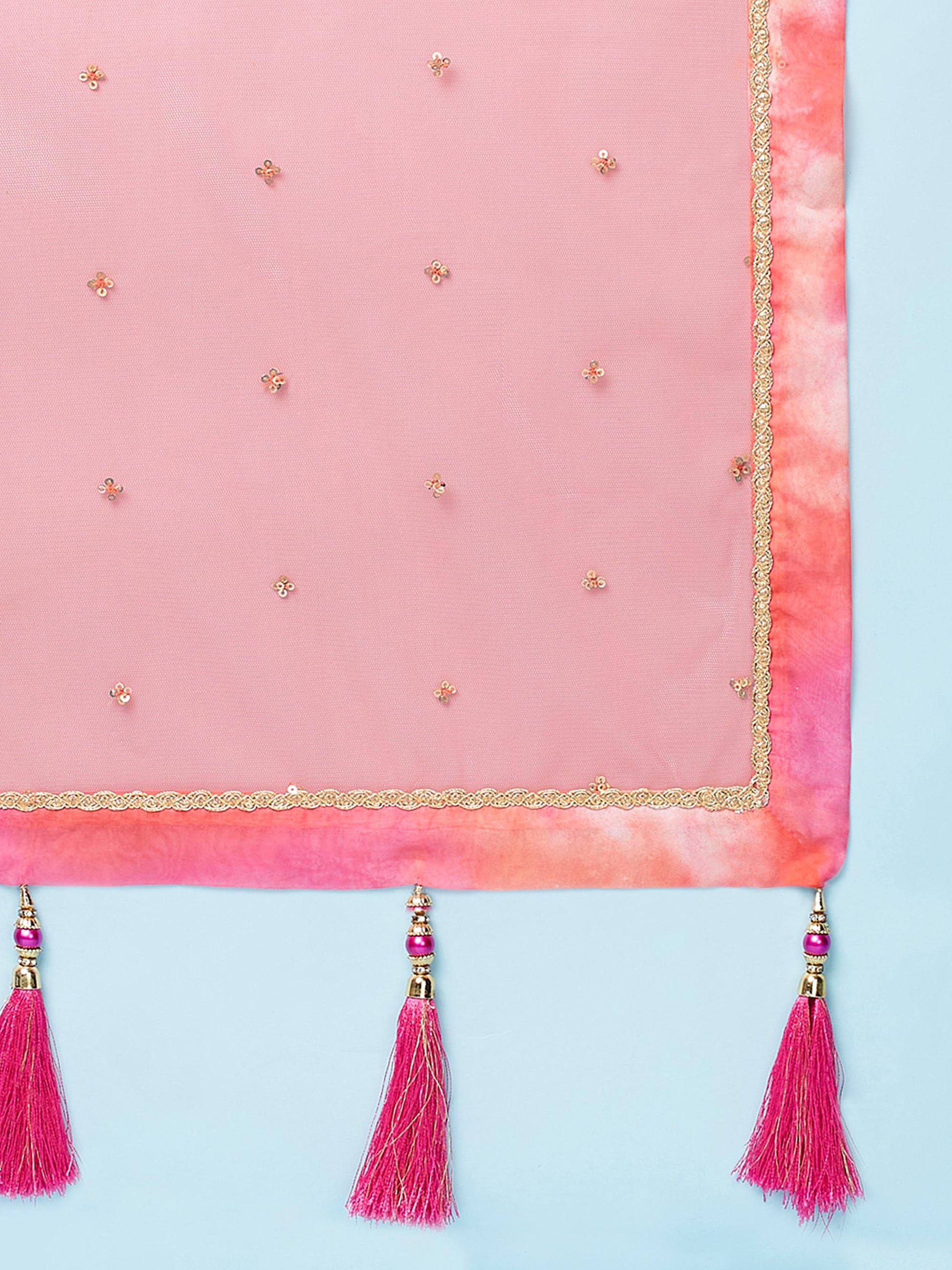 Orange Organza Shibori Printed Lehenga choli & Dupatta