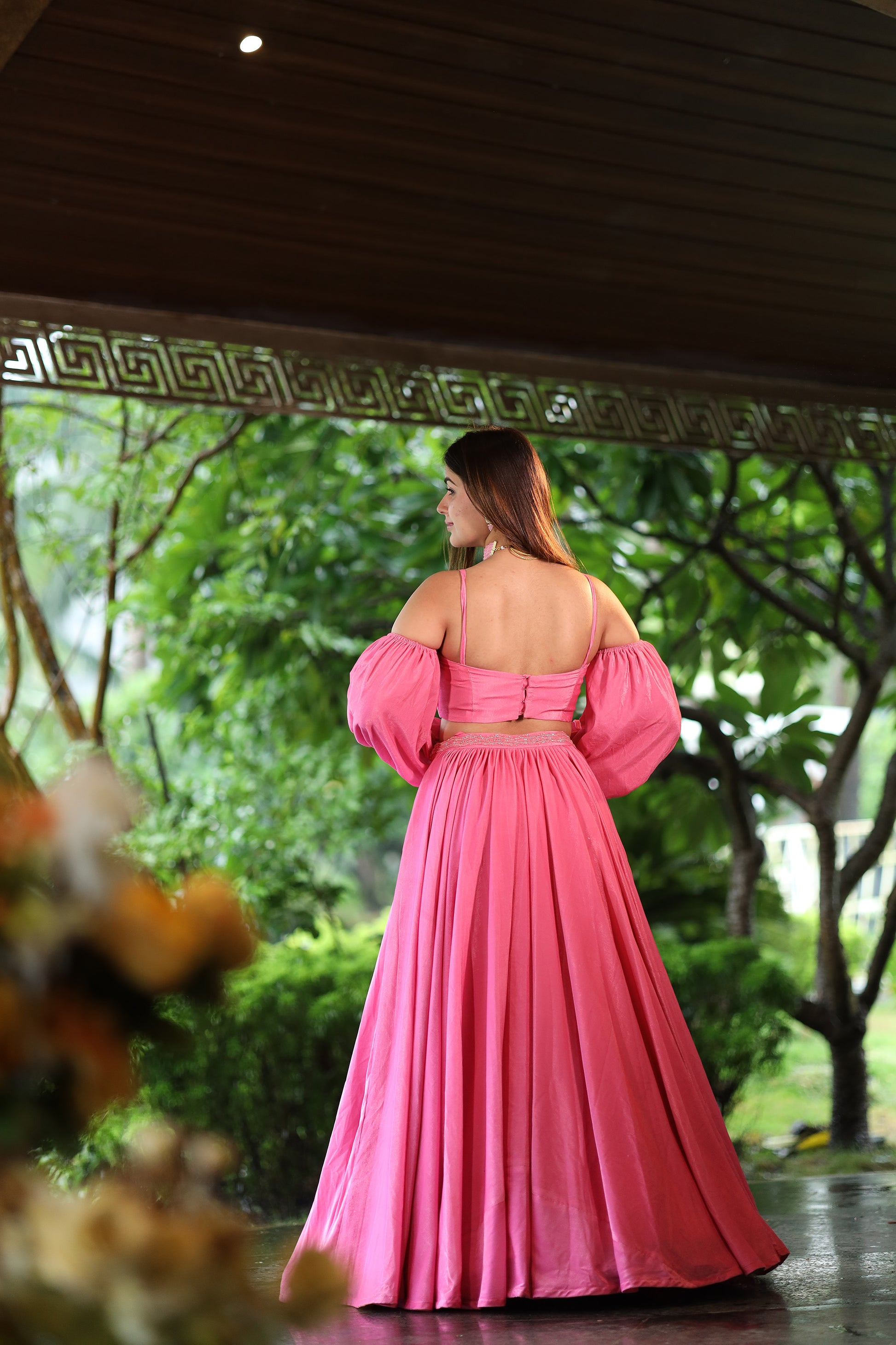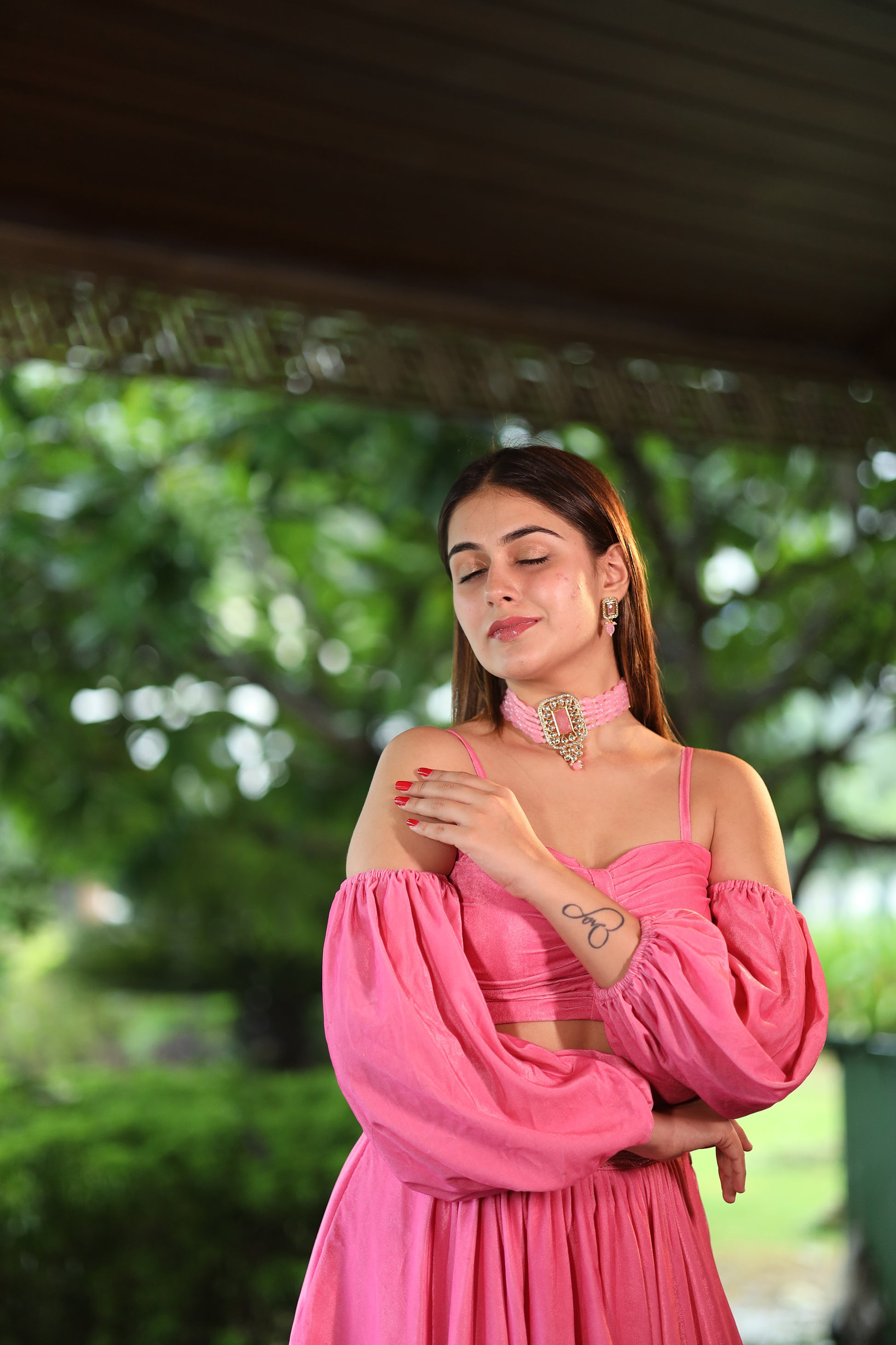 Pink pearls paradise Skirt & Top, with a touch of modern Barbie magic! wrapped in silk-touch velvet .