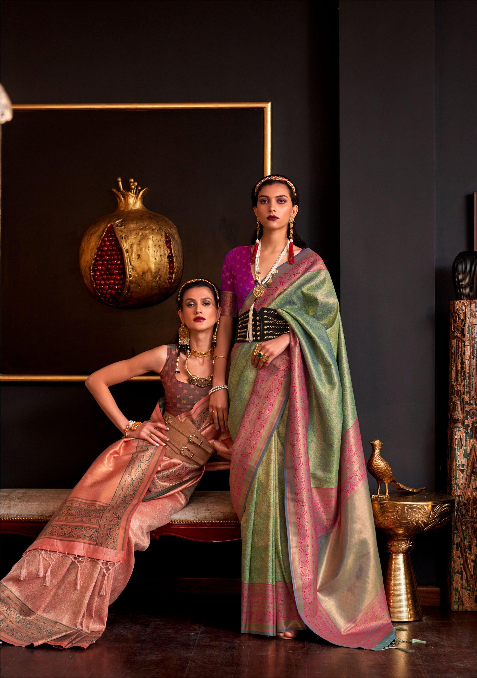 Peach Kamiya Silk Chap handloom Saree