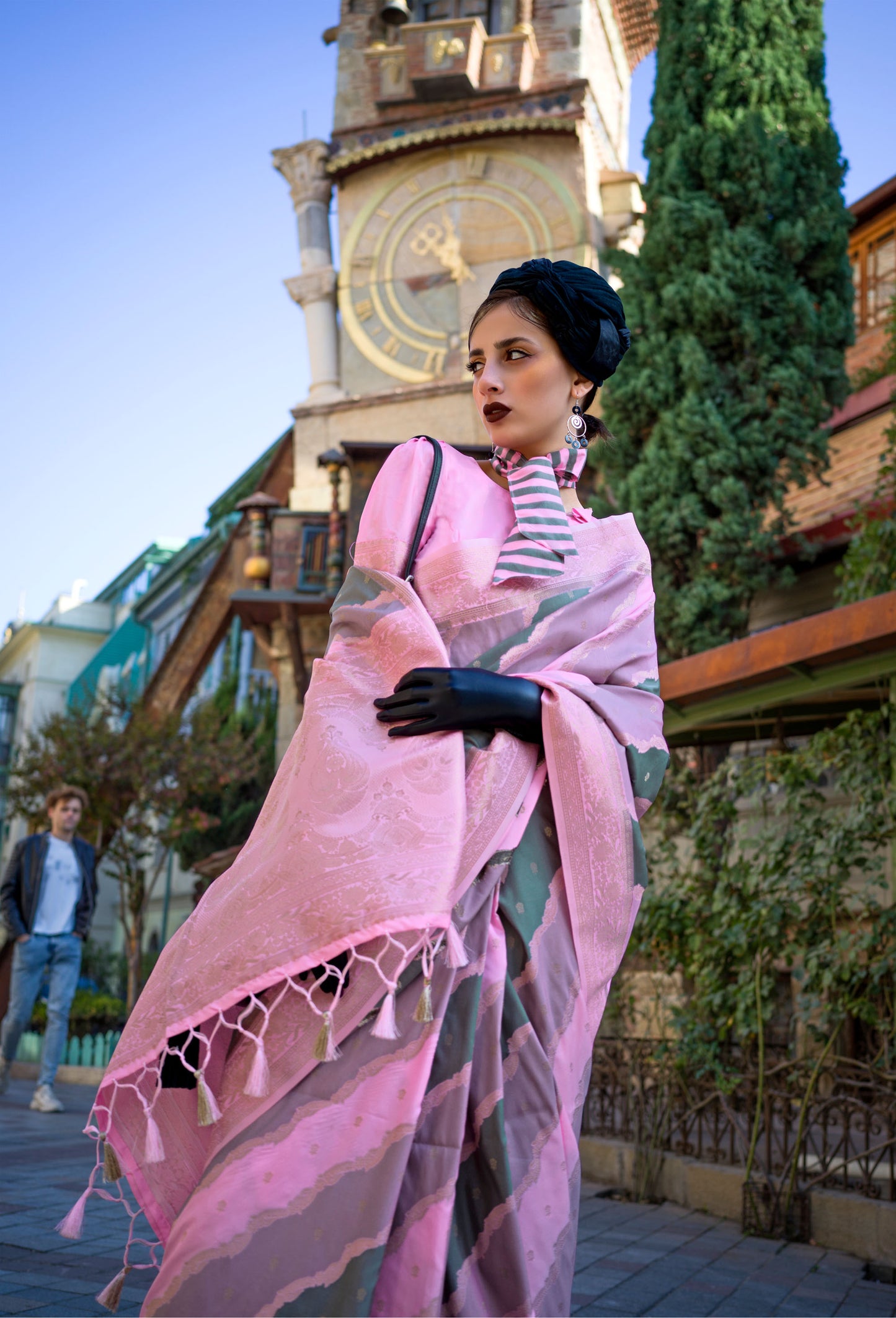 Pink Kimbus Katan Silk Rangkaat Handloom Saree