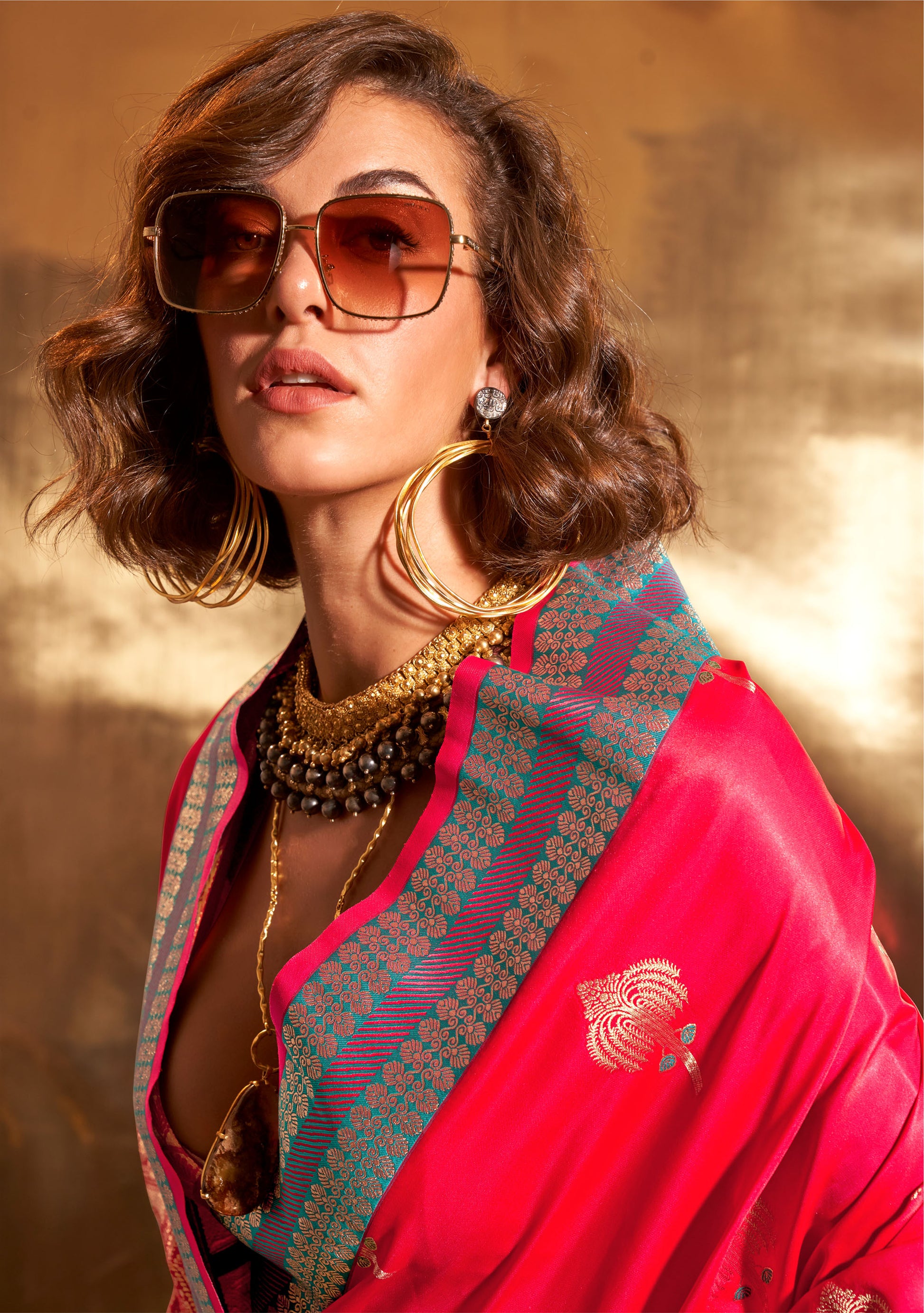 Pink Ksattika Pure Satin Handloom Silk Saree