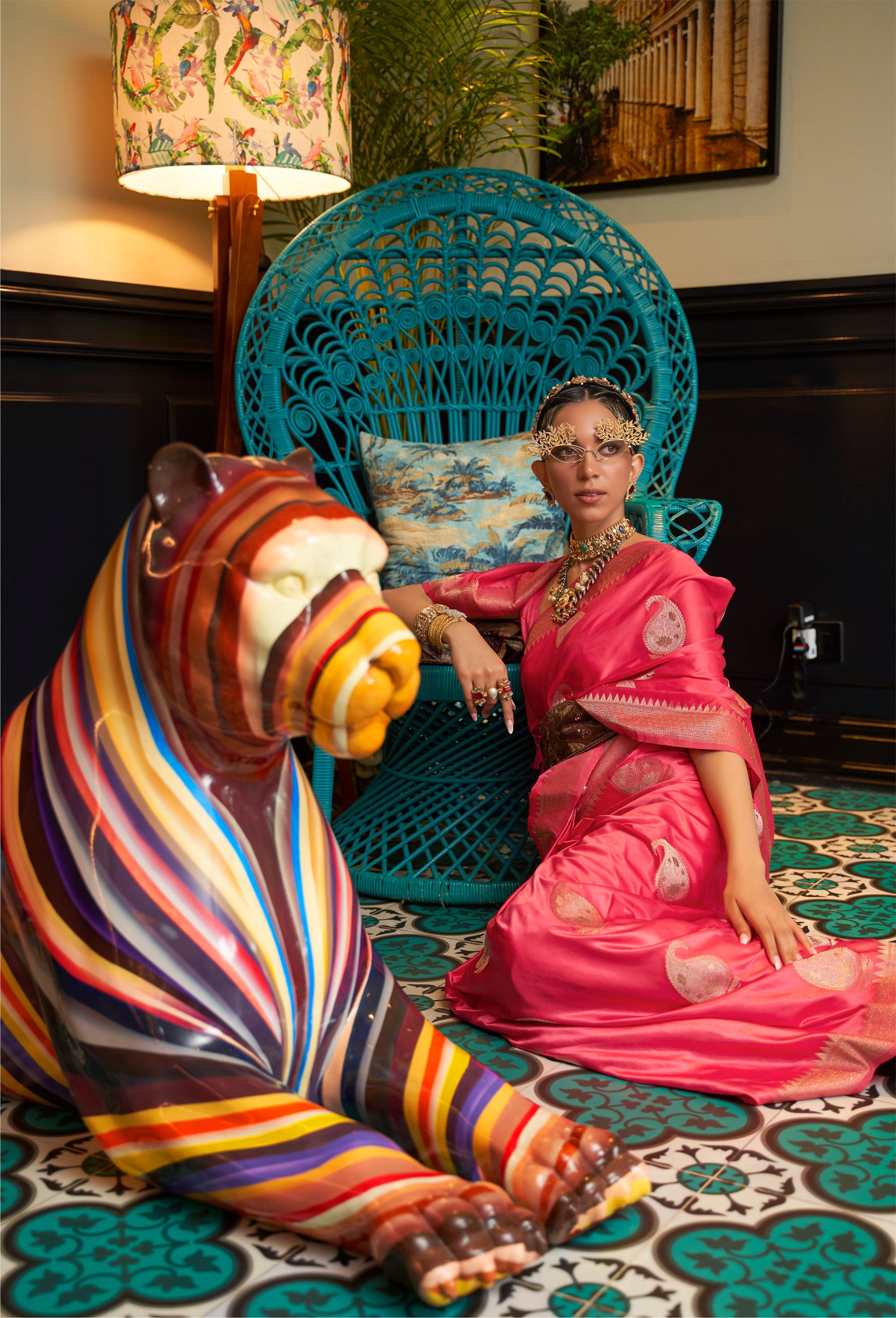 Pink Kushaq Silk Nylon Pure Satin Saree