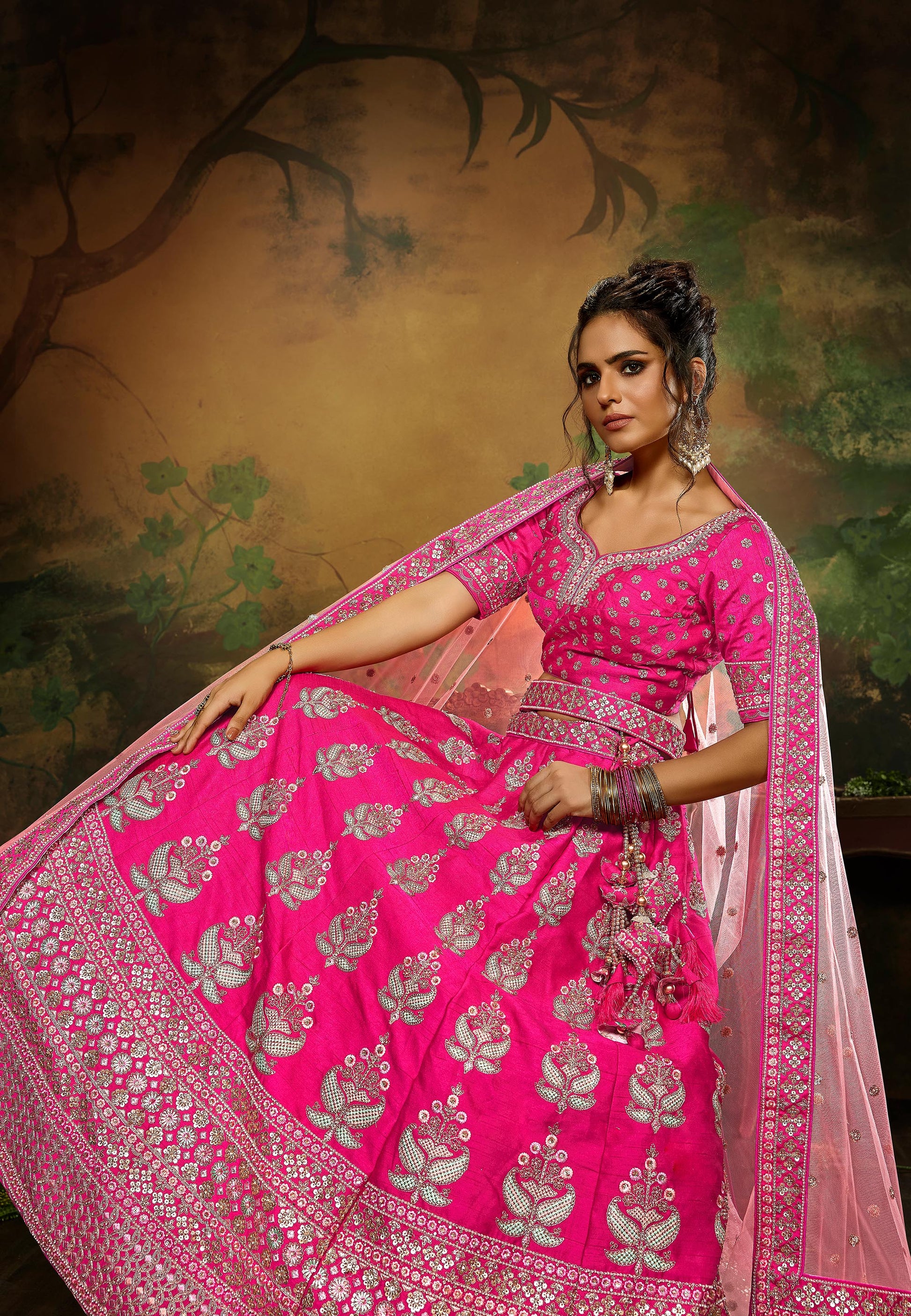 Pink Pure Silk Moti & Zarkan heavy embroidery Semi-Stitched Lehenga choli & Dupatta