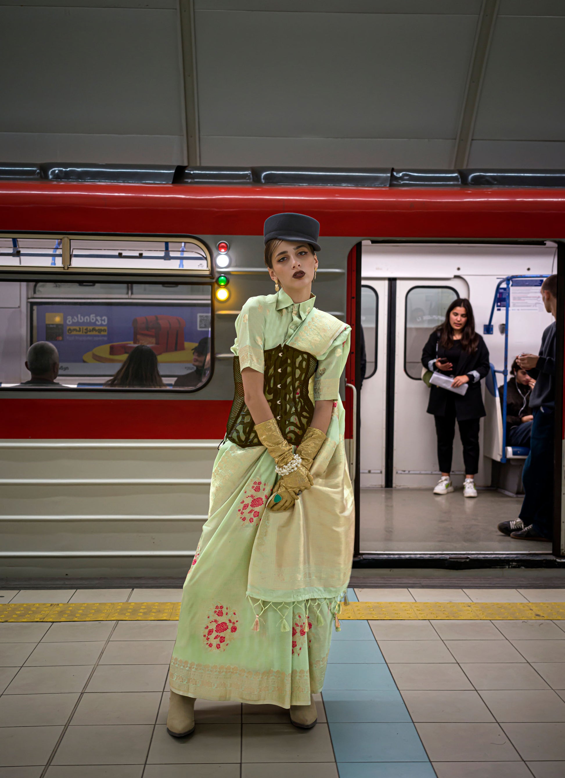 Pista green Kytoto Habutai Silk Handloom Saree