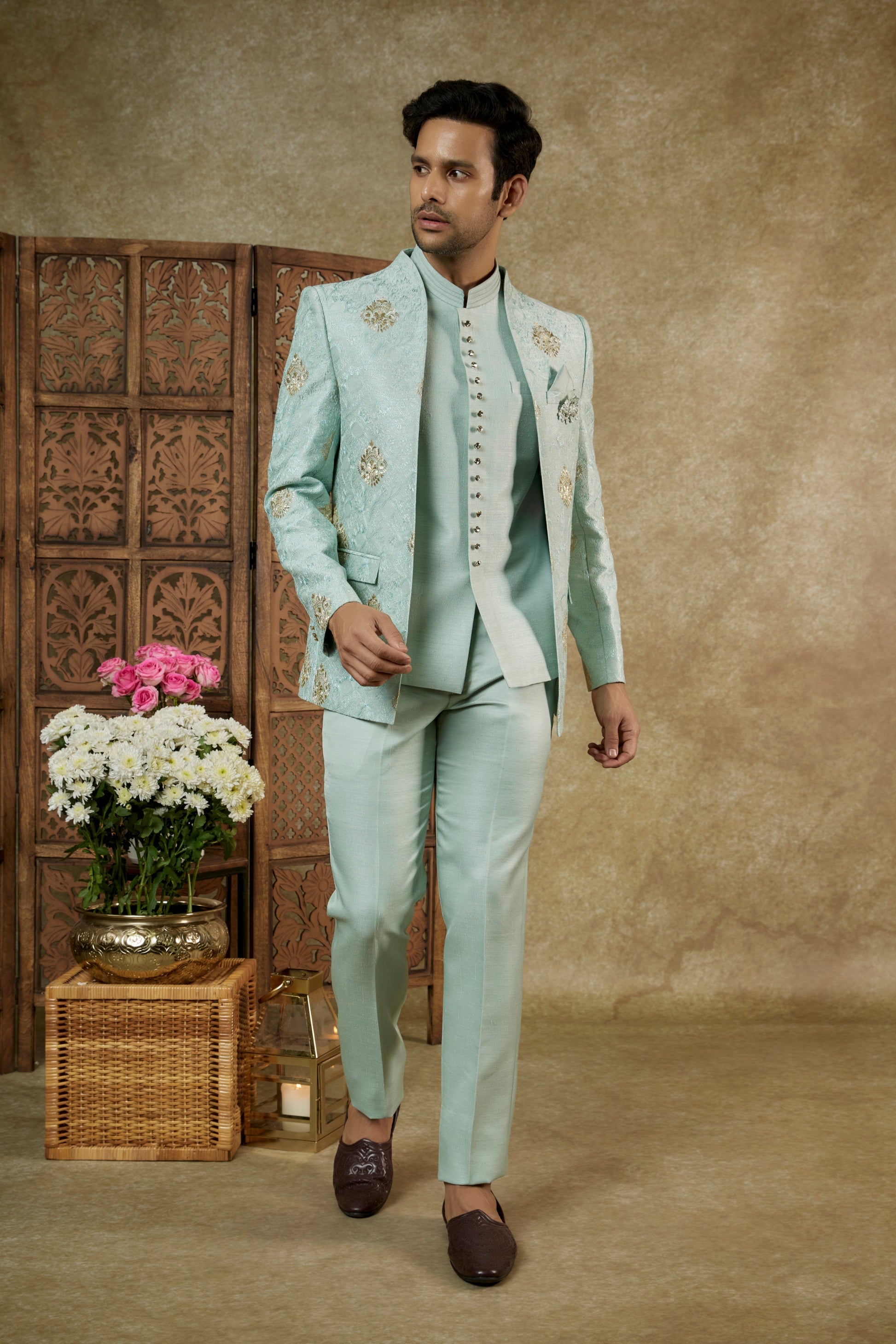 PISTACHIO GREEN JACQUARD OPEN JODHPURI SET