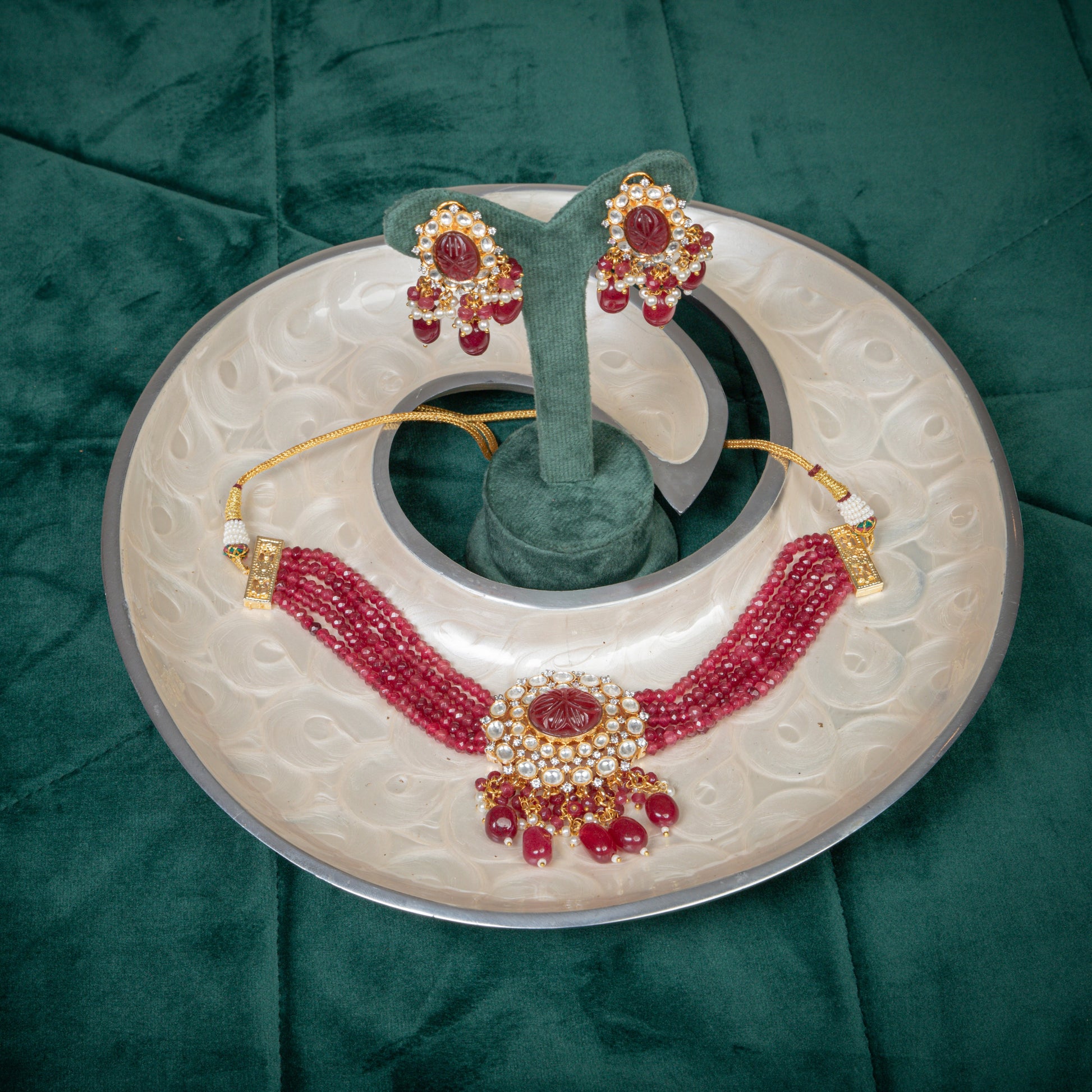This premium Kundan Pearl Choker is available in 2 gorgeous colours -  Yellow and Blood Red. Elevate your style with this exquisite piece!
