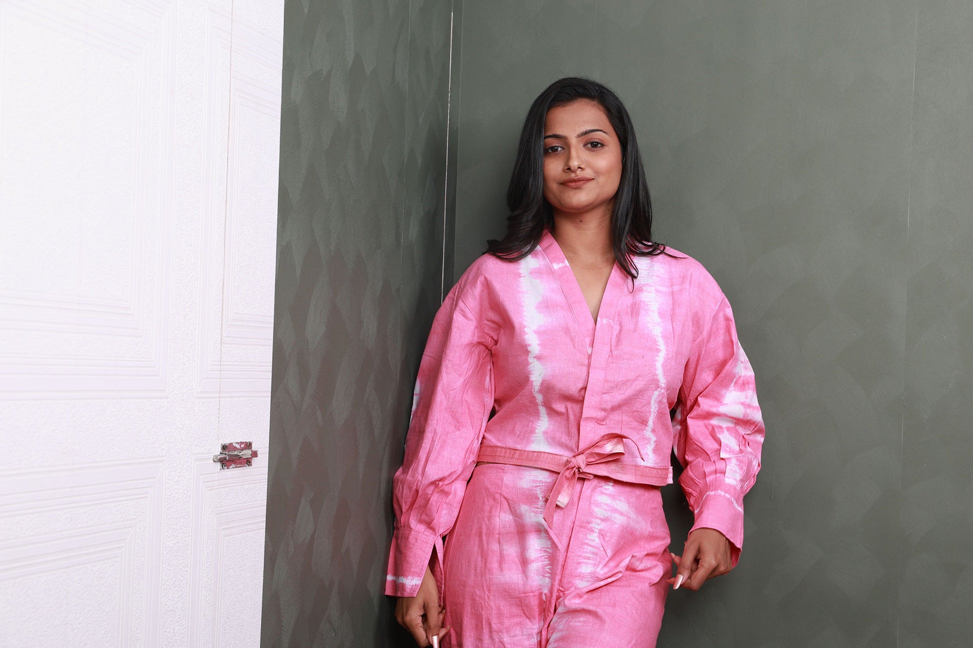 Pure Khadi Cotton Handwoven Pink co-ord set