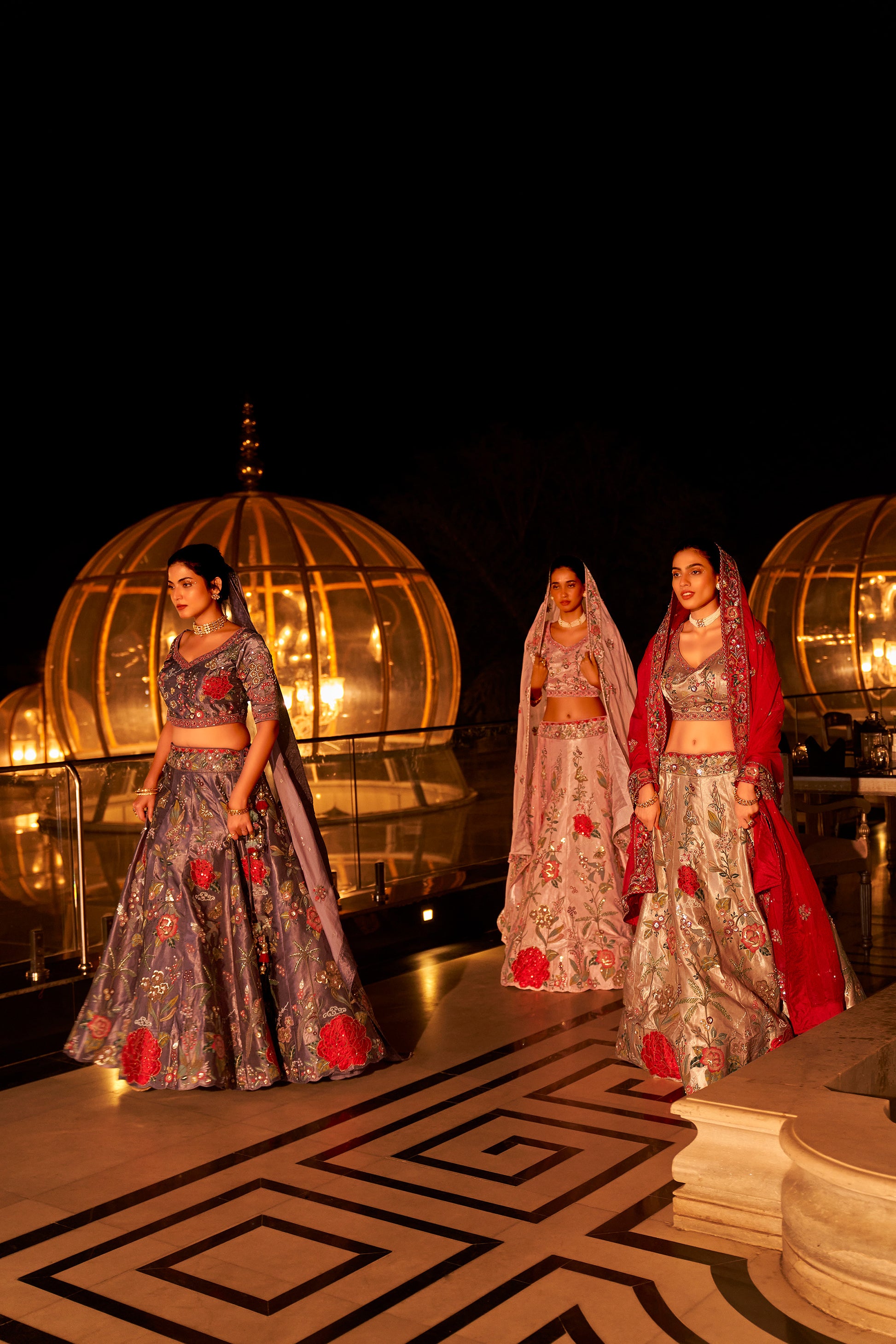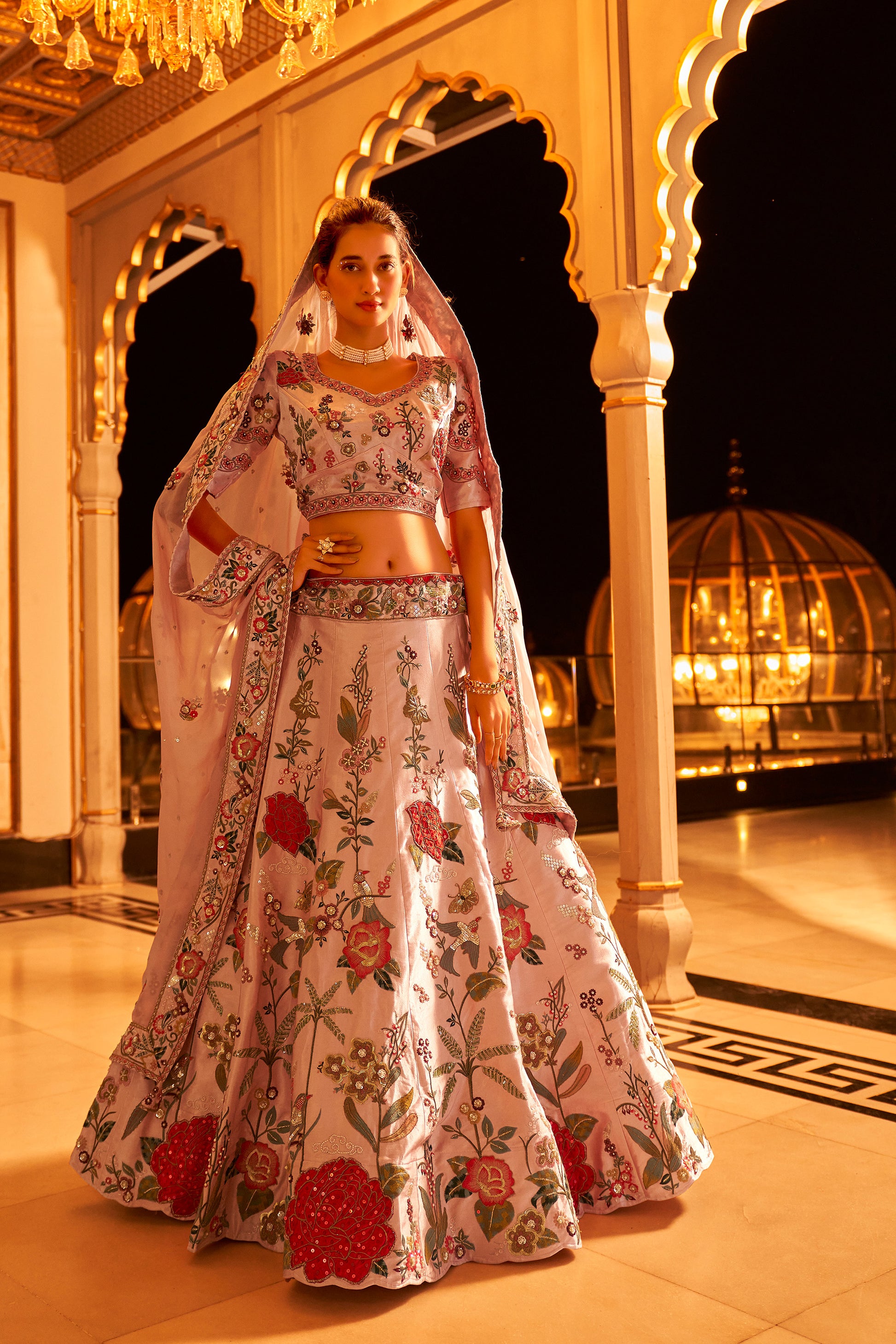 Pure Viscose Satin Pink sequins embroidered Bridal Lehenga