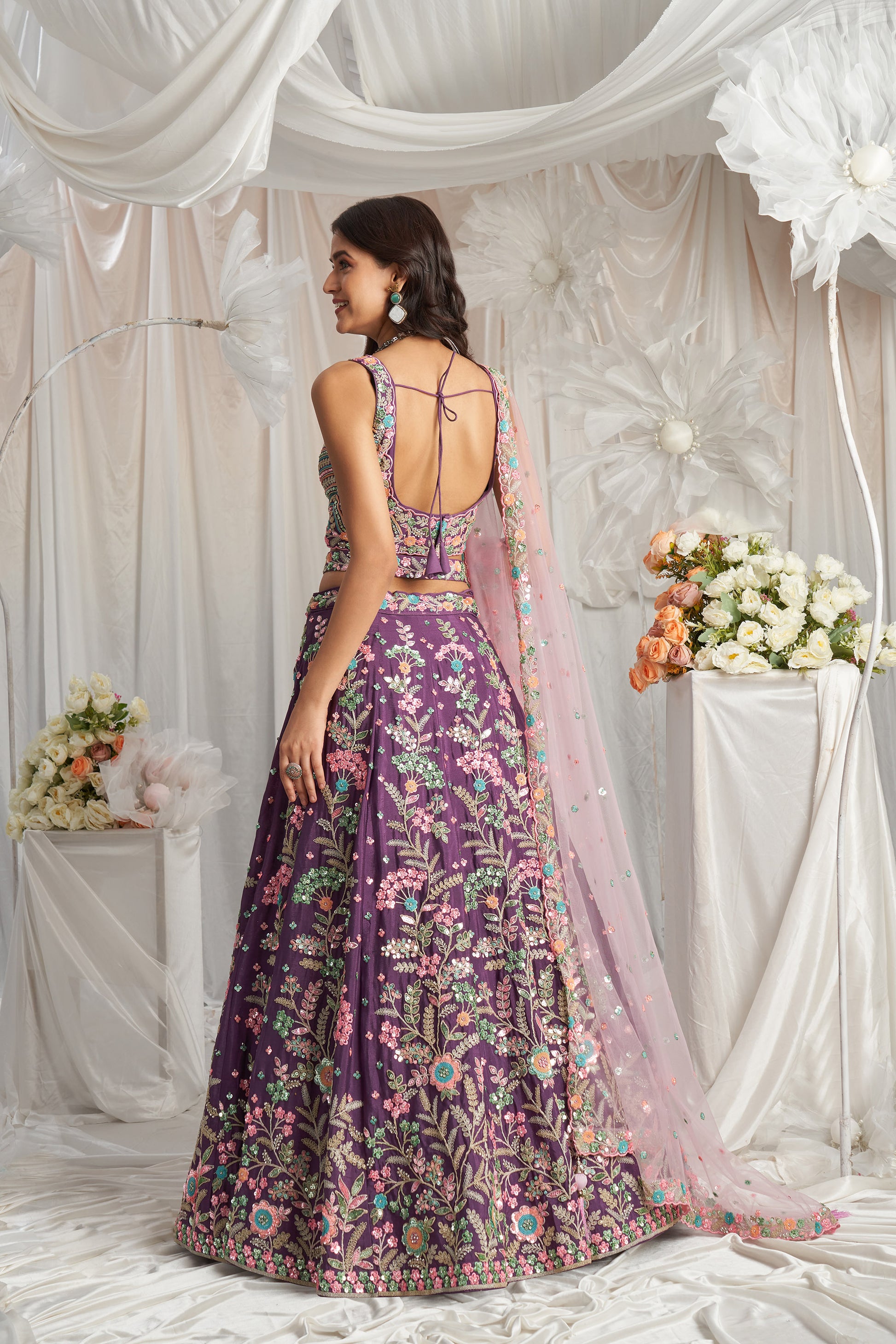 Purple Georgette Sequins embroidery Engagement Lehenga Choli