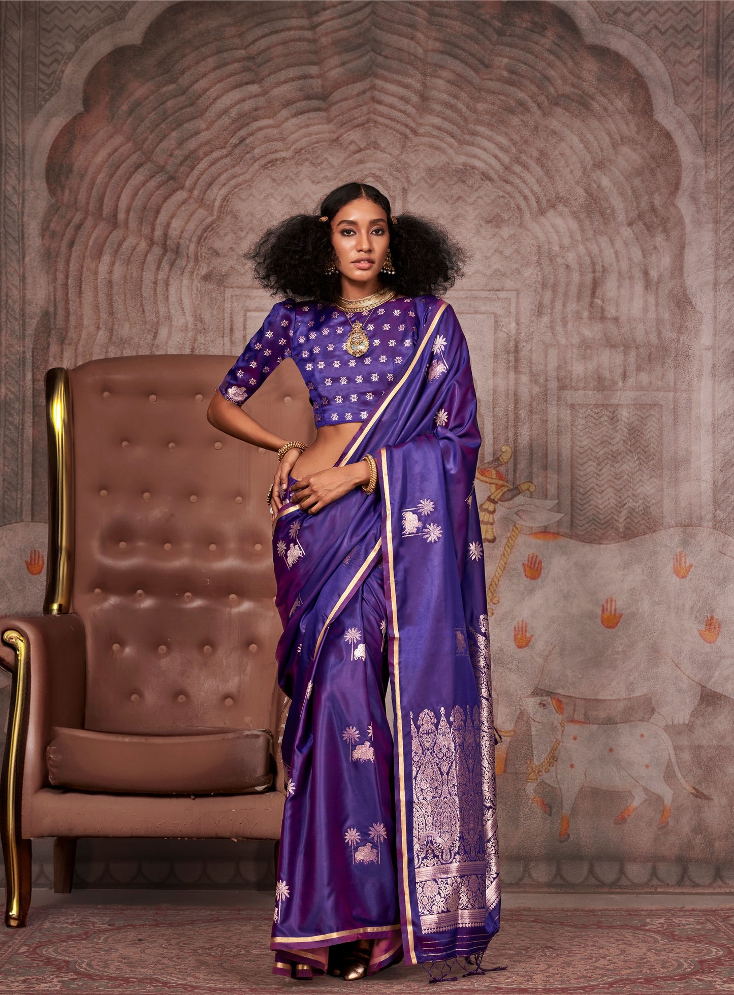 Purple Kanthkala pichwai Pure satin Handloom saree