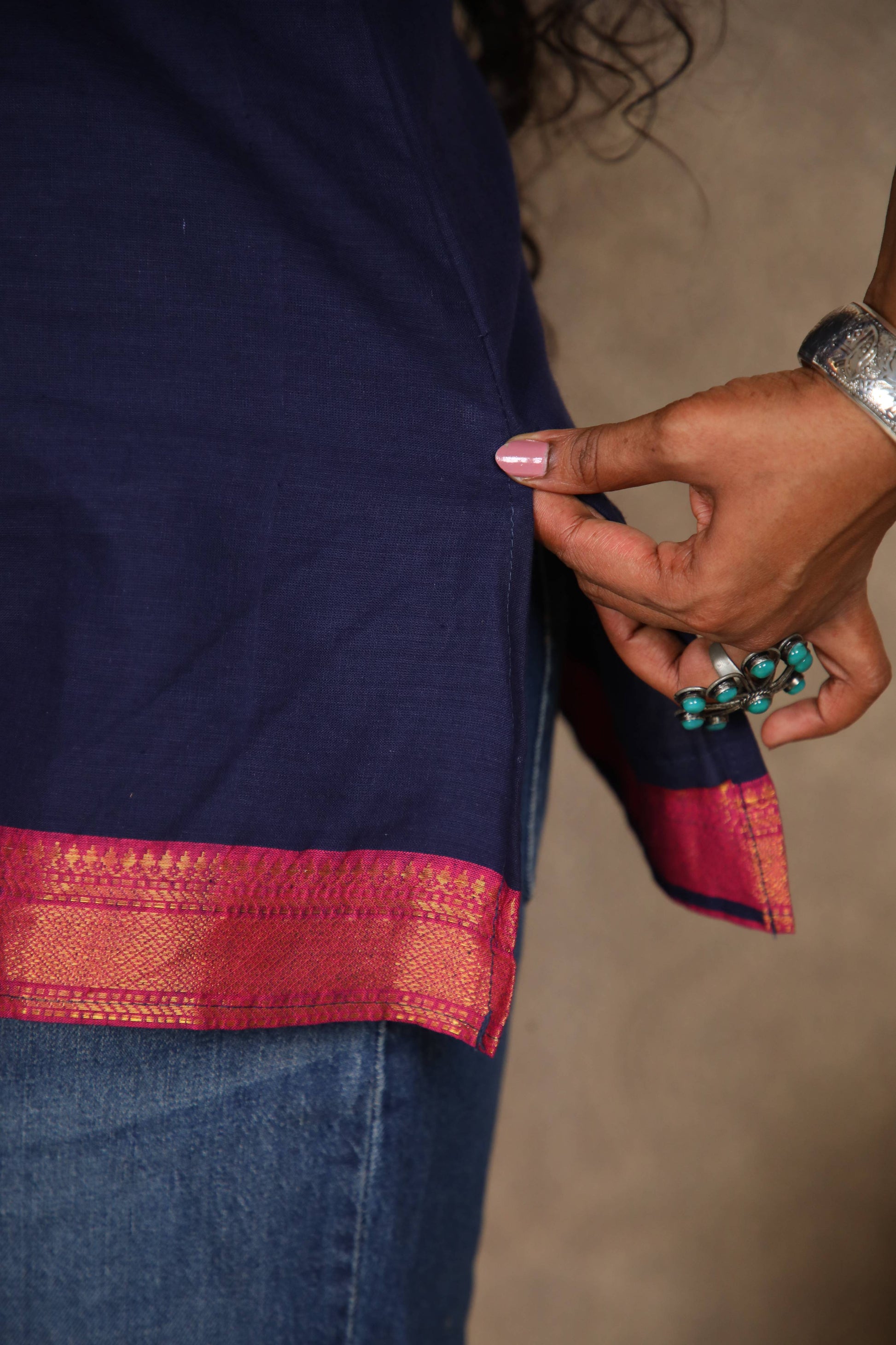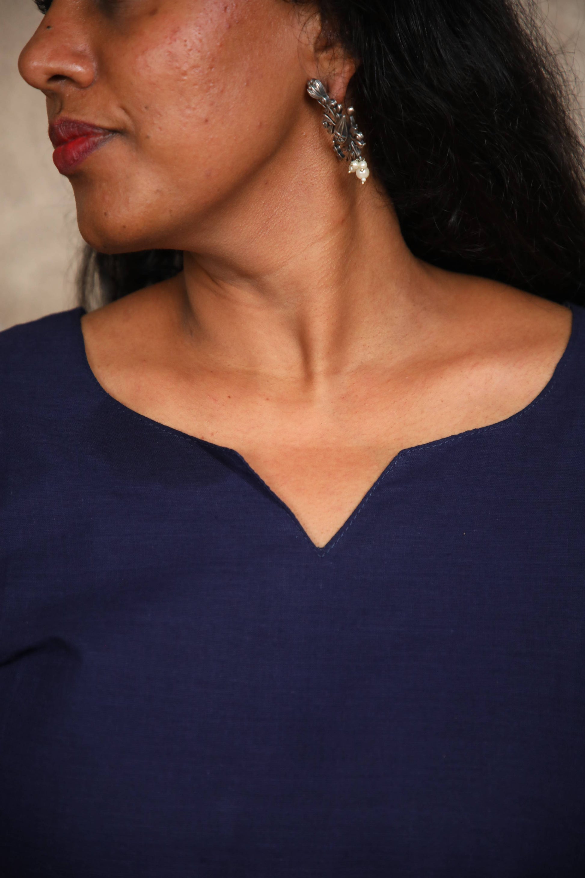 Rang- Short Kurti in Mangalagiri cotton in Navy Blue color