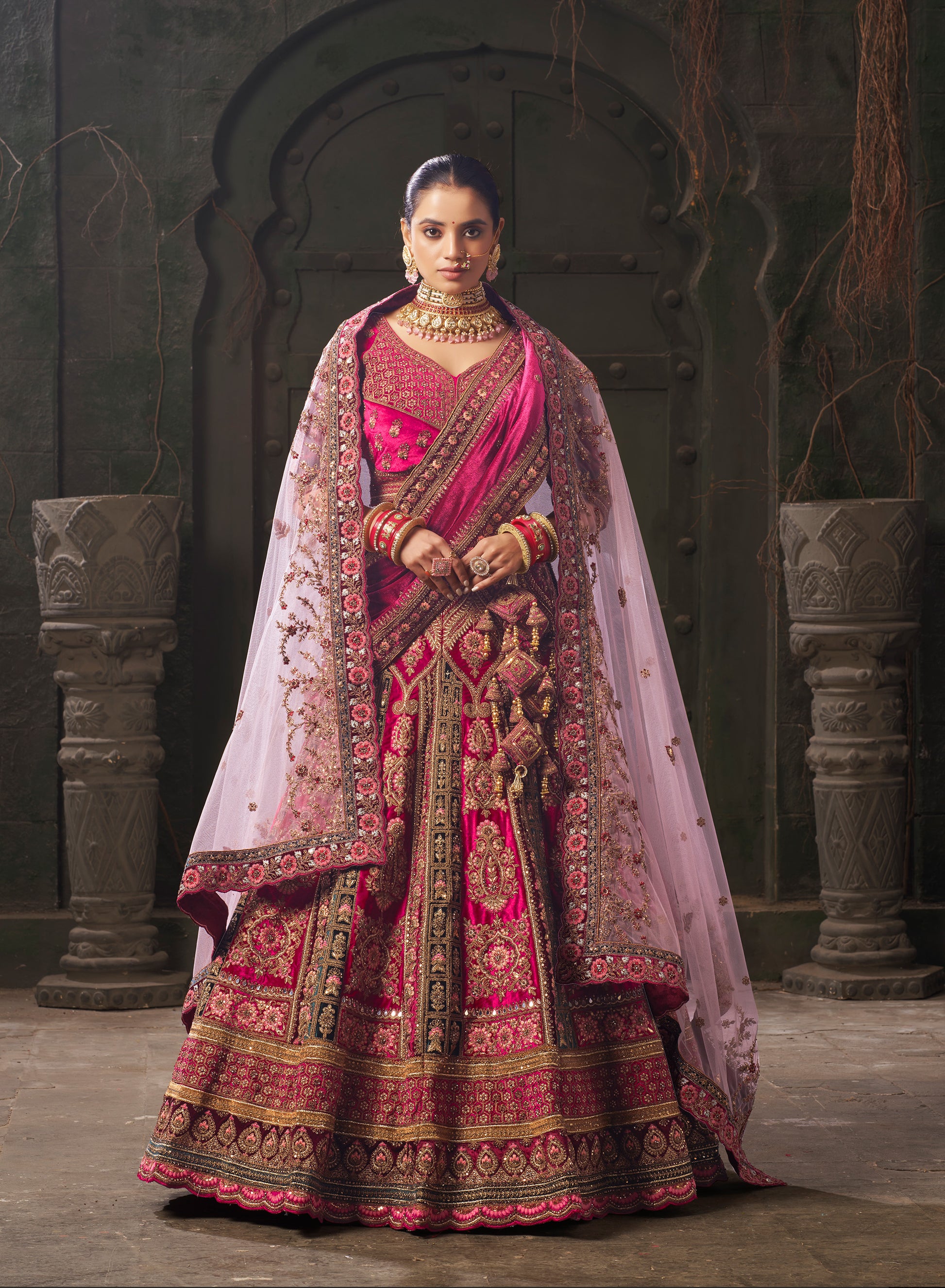 Rani and Rama Green Premium Zarkan Embroidered Lycra Velvet Bridal Lehenga with Double Dupatta