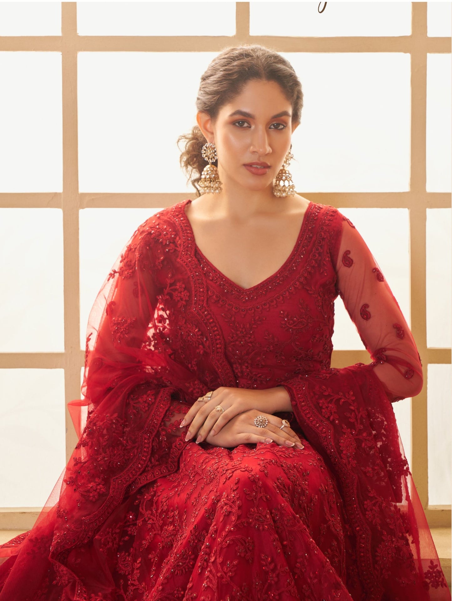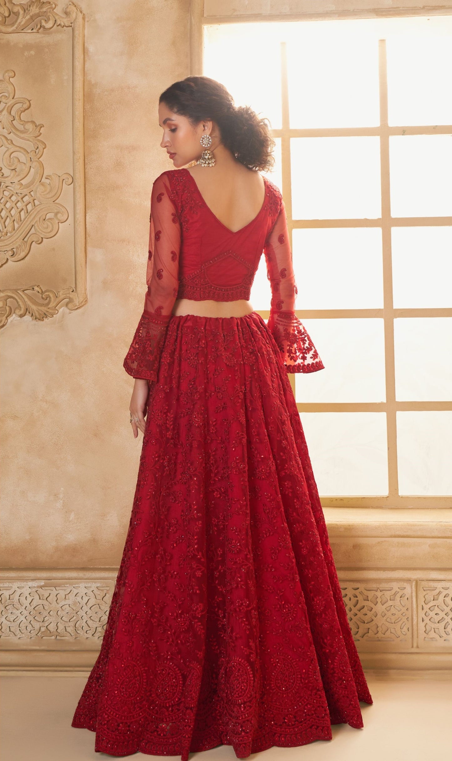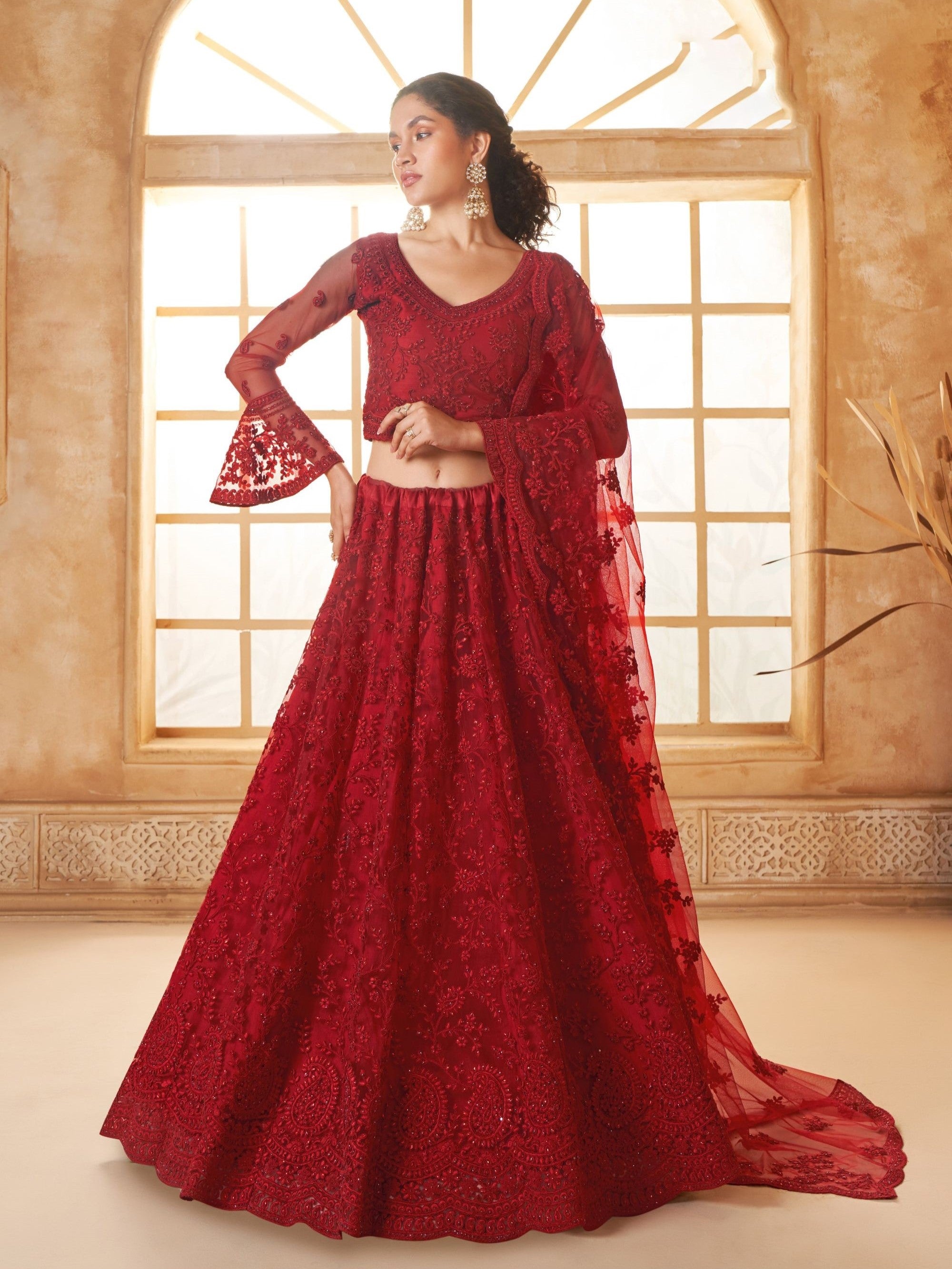 Red Heavy Floral Embroidered Net Bridesmaid Lehenga Choli