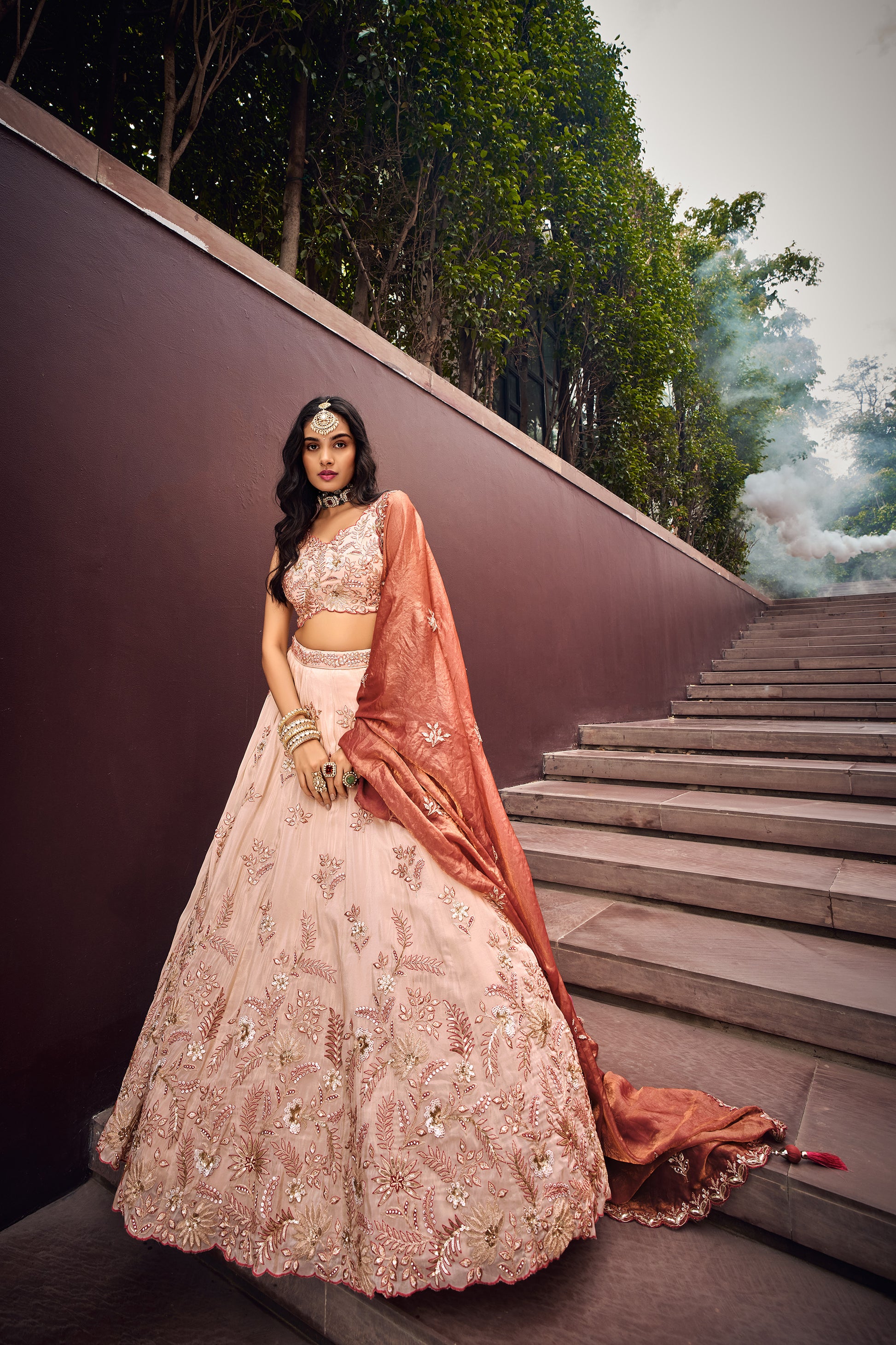 Rose Gold Viscose Sequins work Bridesmaid Lehenga set