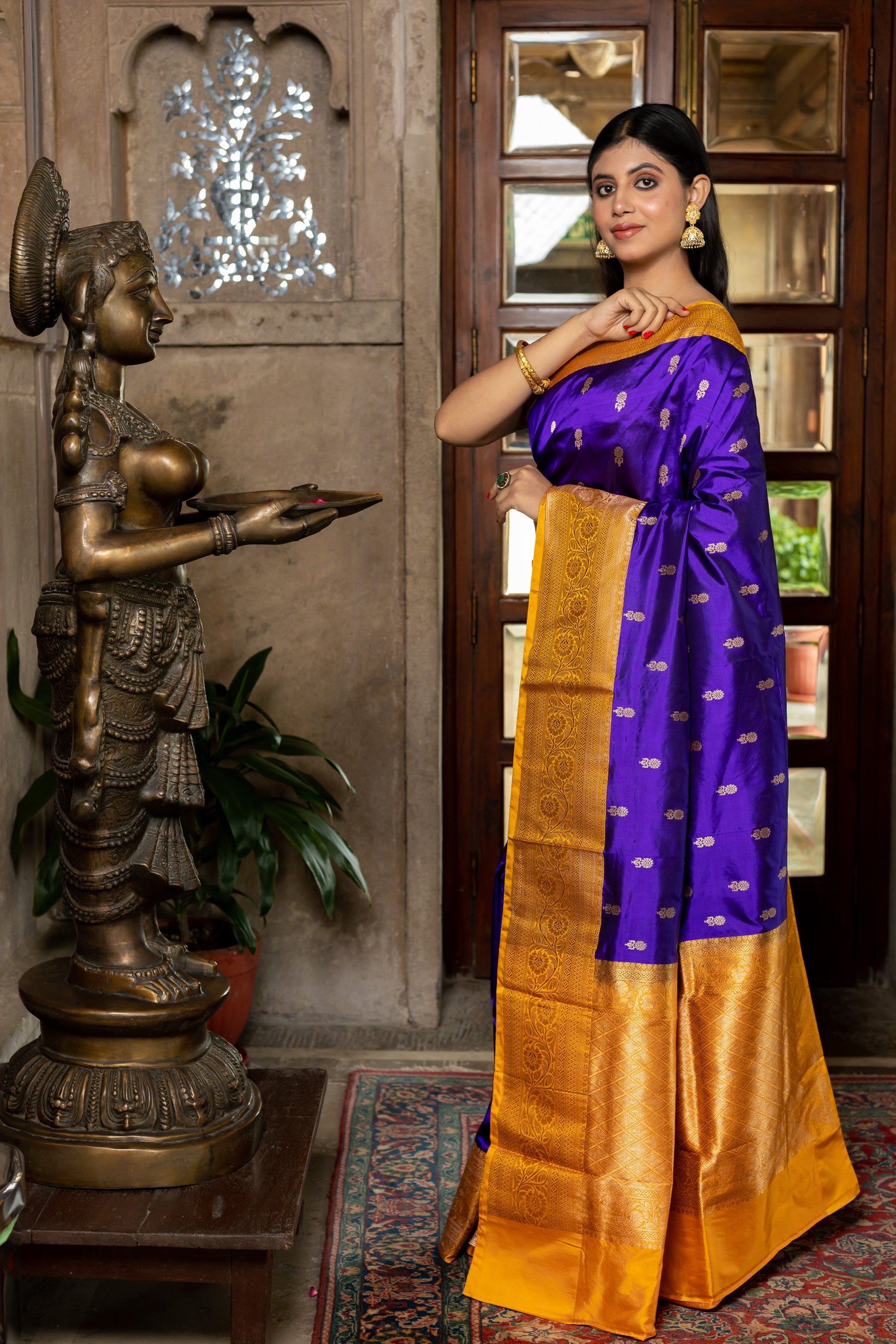 Royal Blue Handwoven Kadwa Katan Silk Saree