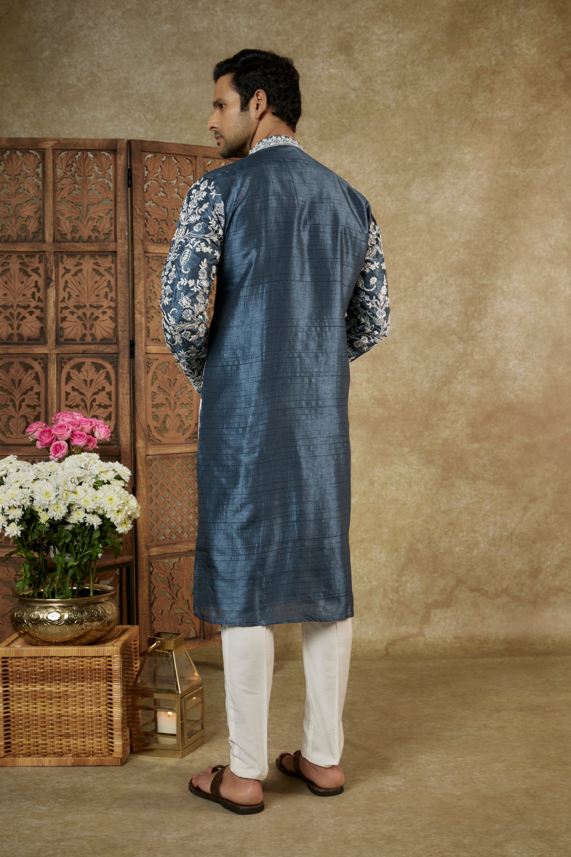 SAPPHIRE BLUE RESHAM EMBROIDERED SPLENDID SILK KURTA SET