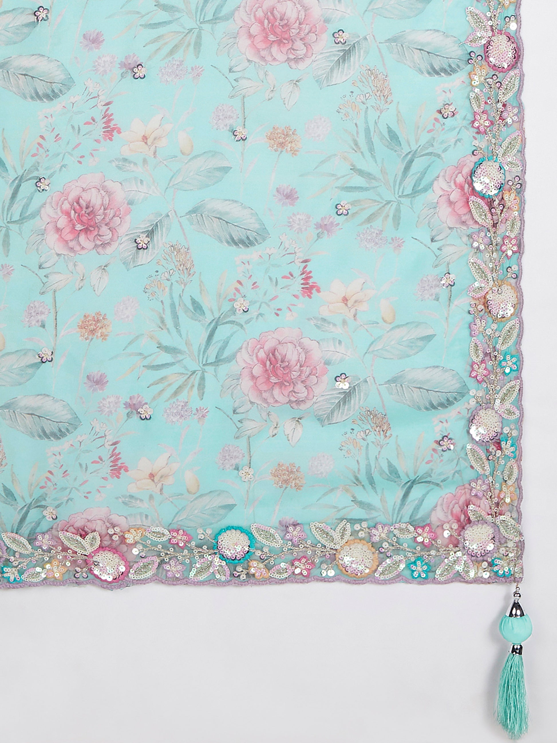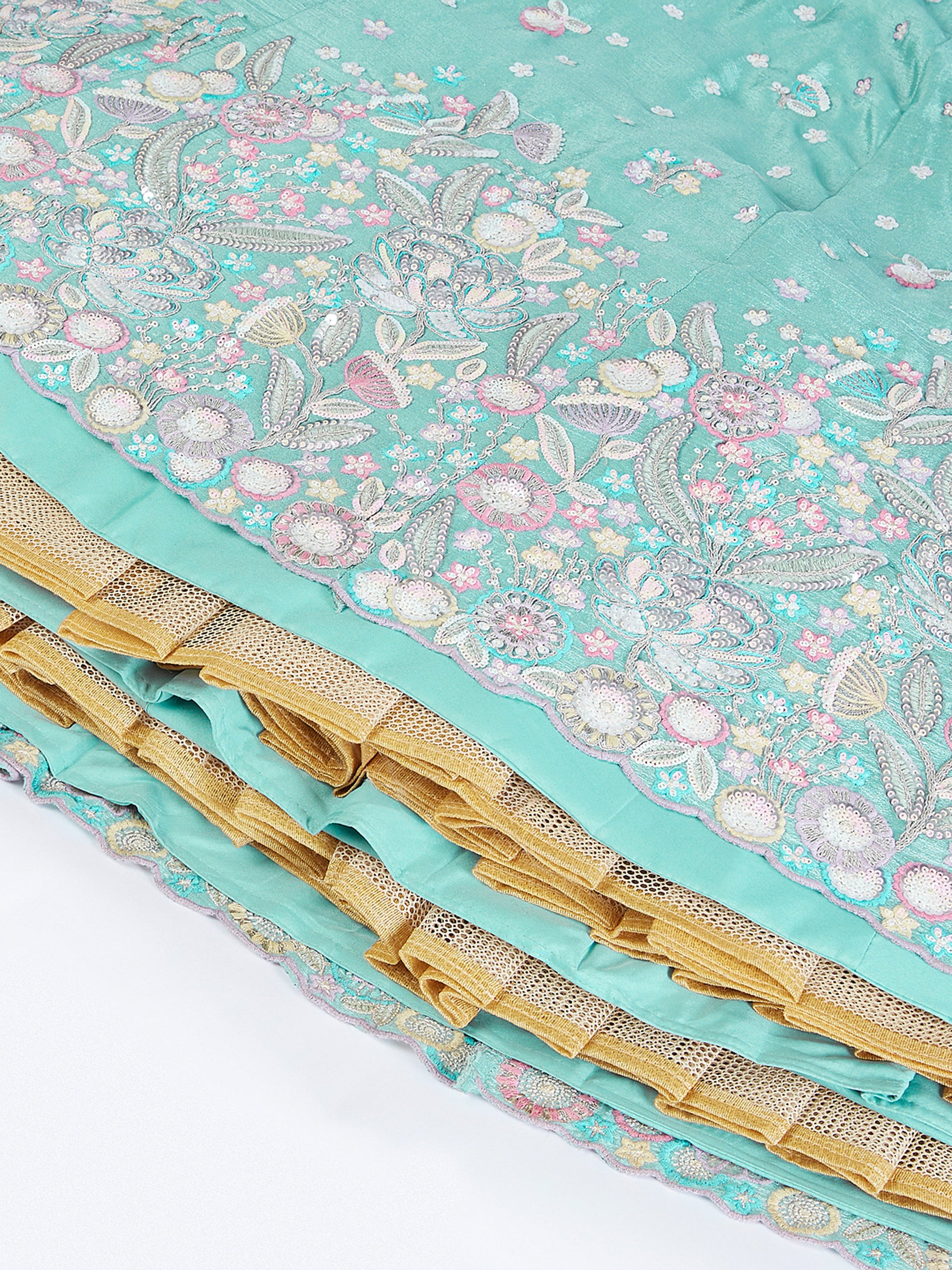 Sea green Chiffon Sequins and thread embroidery Lehenga