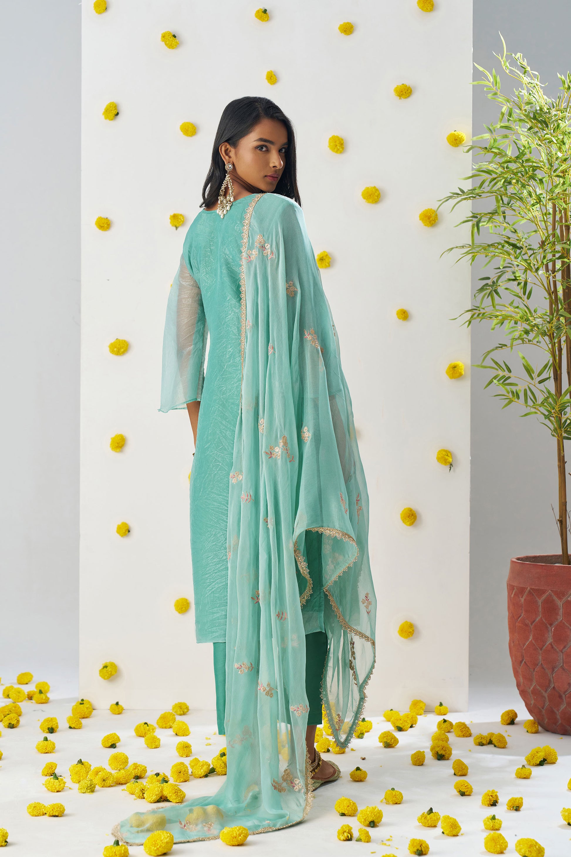 Sea Green Fancy Crush Sequins & Thread Embroidered Kurta Set