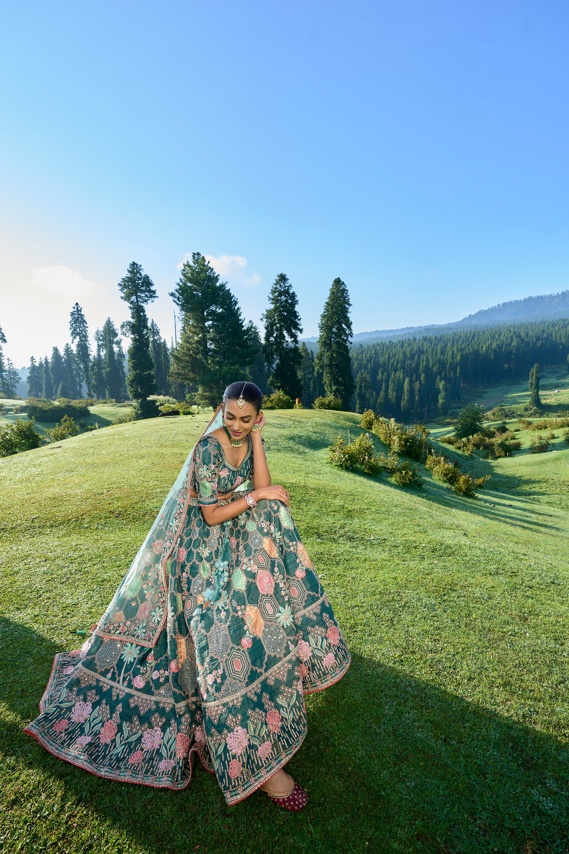 Sea Green Heavy Embroidered Designer Bridal Lehenga Set