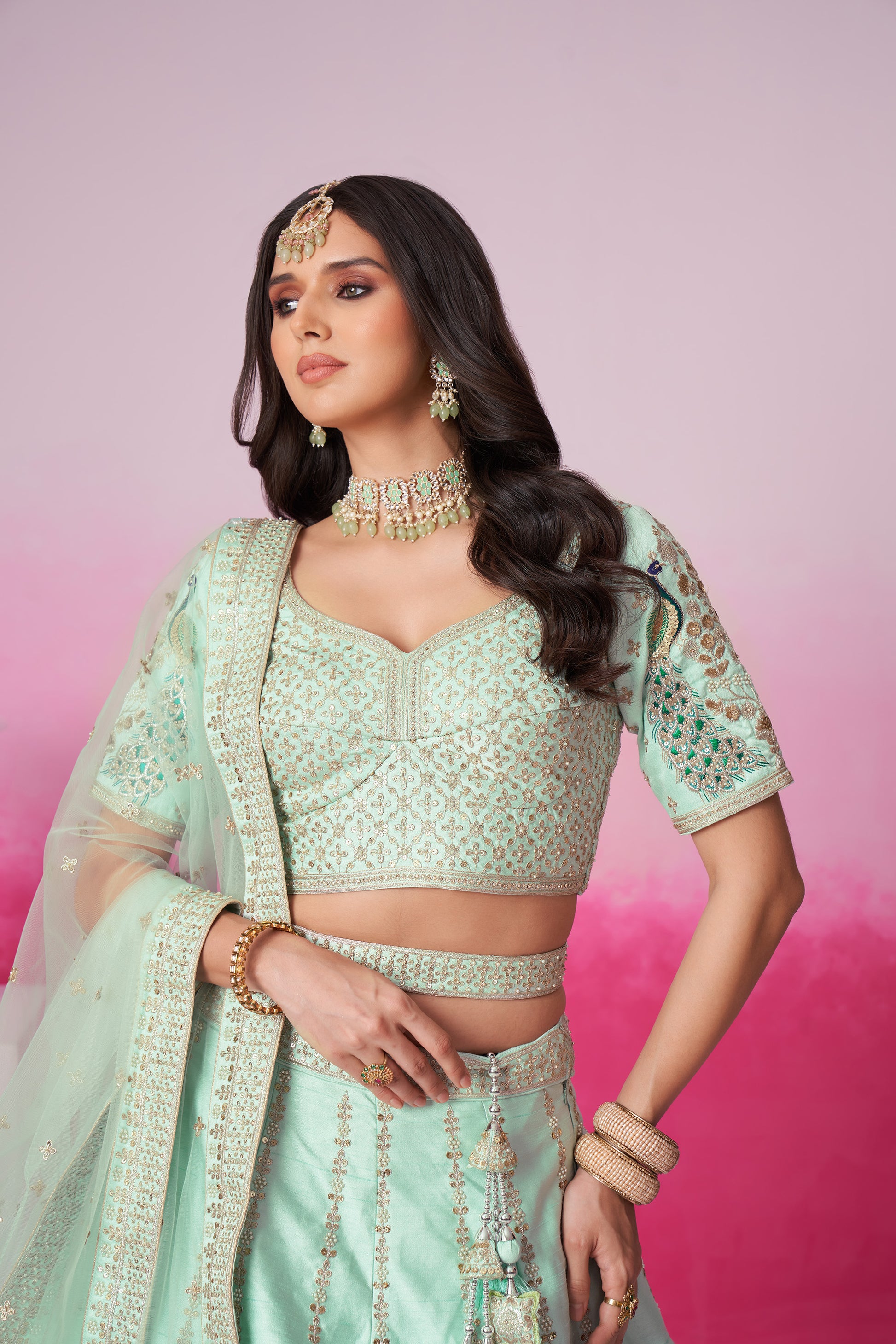 Sea Green Pure silk Sequins embroidery Bridal Lehenga choli