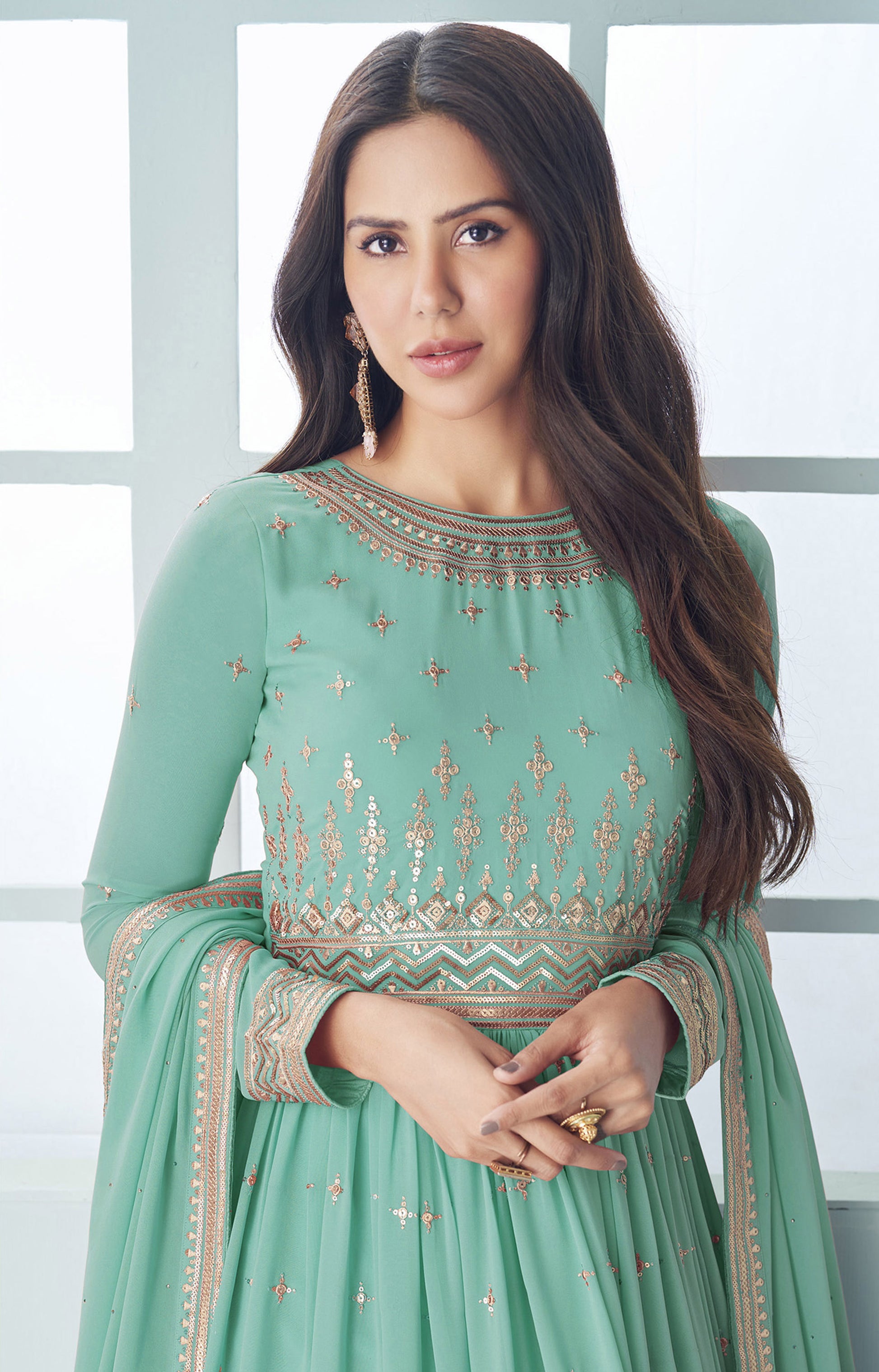 Sea Green Sequins embroidered Georgette Surya Anarkali