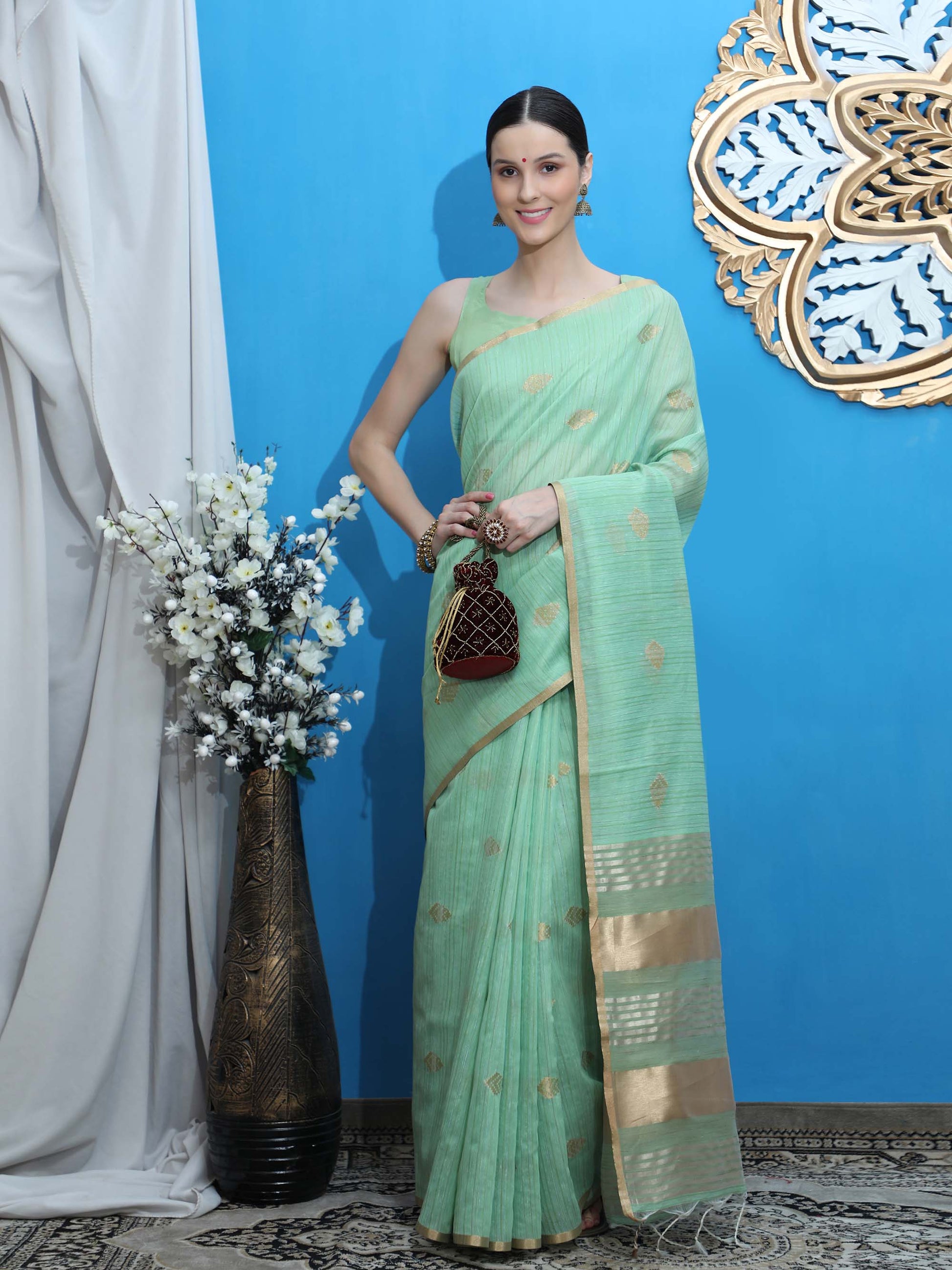 Sea Green Zari Woven Kanchi Cotton Saree