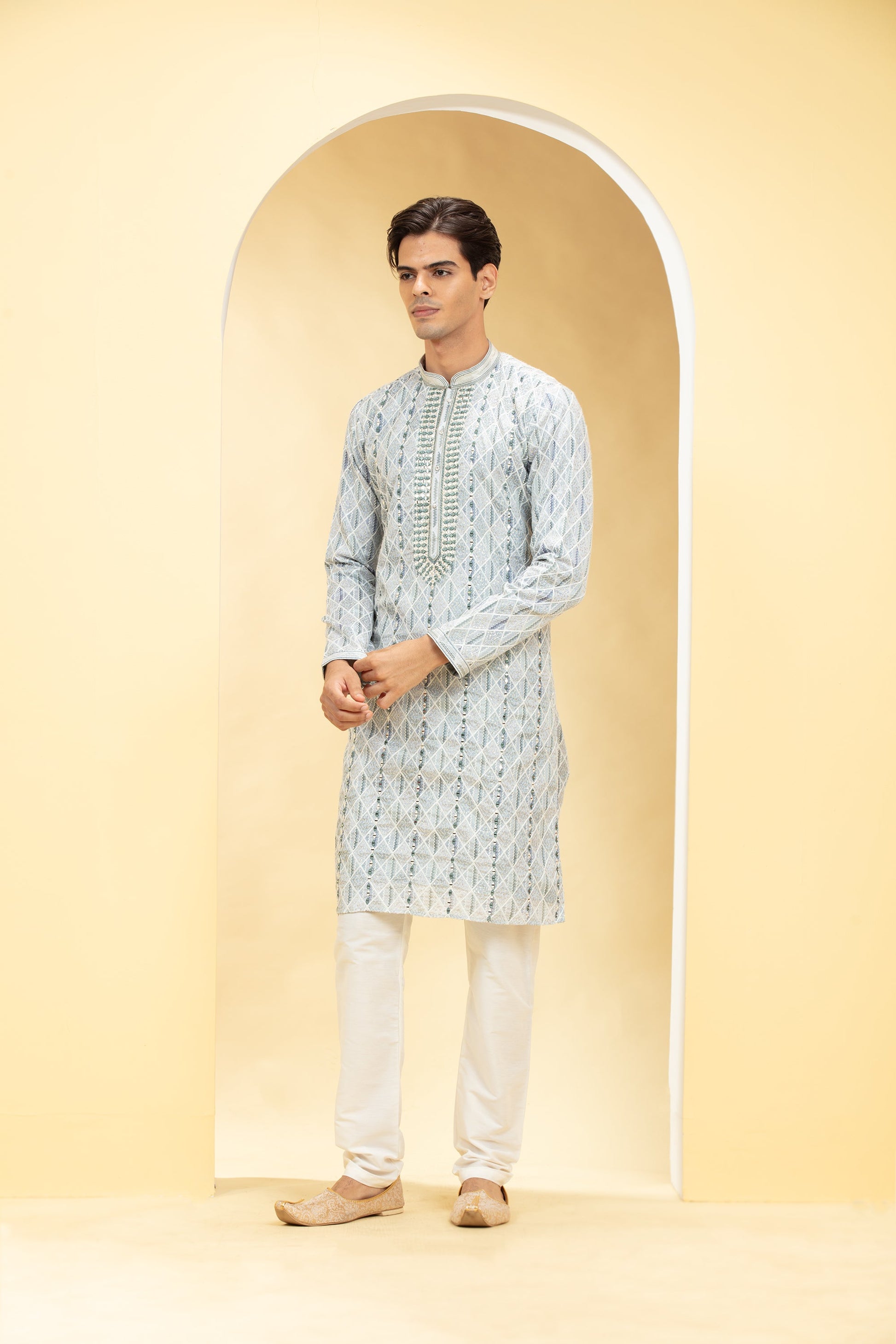 Silver Grey kurta pajama Set with Lucknowi mirror work