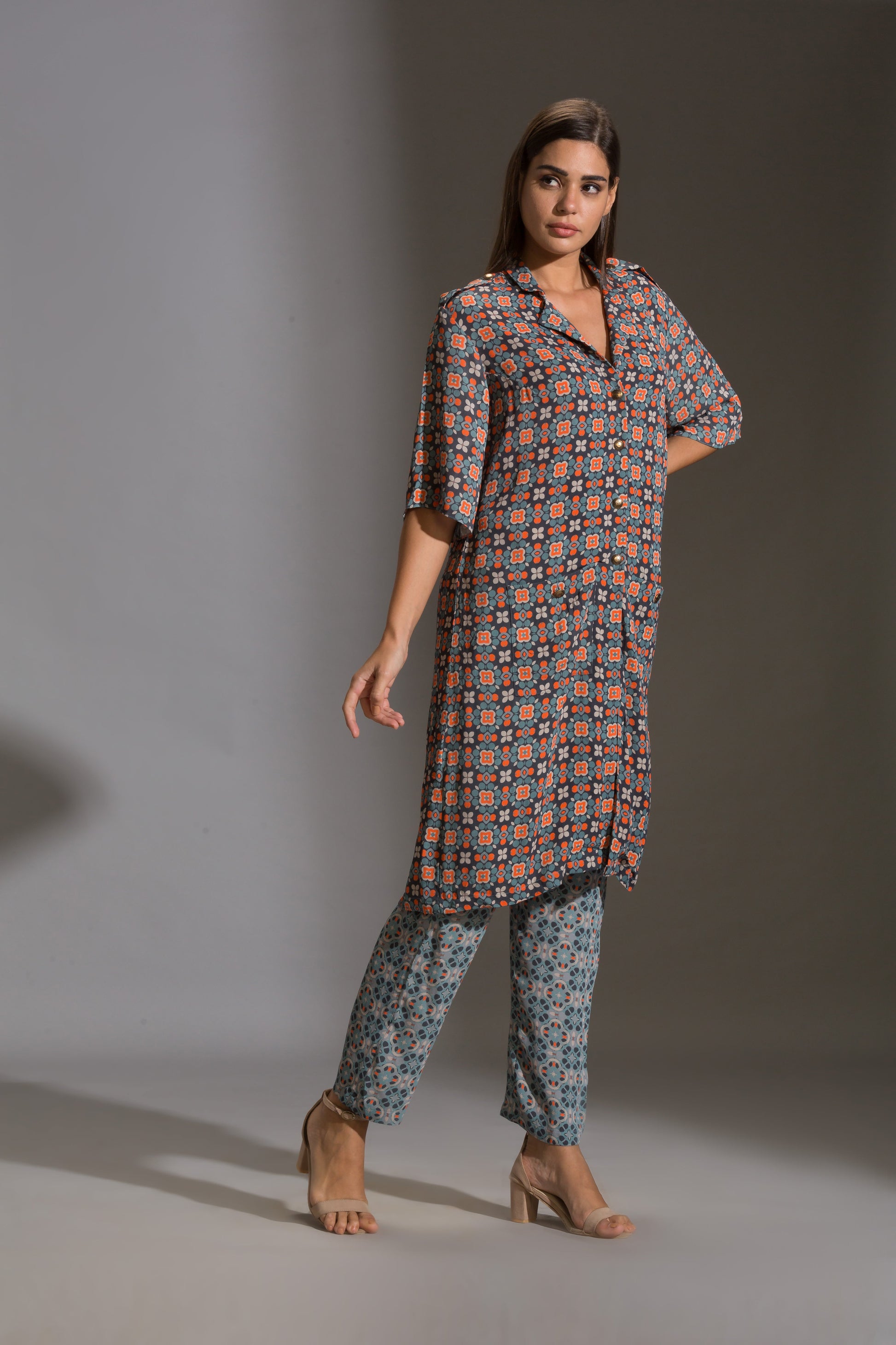 Arabesque Geometrical Printed Kurta With Pockets