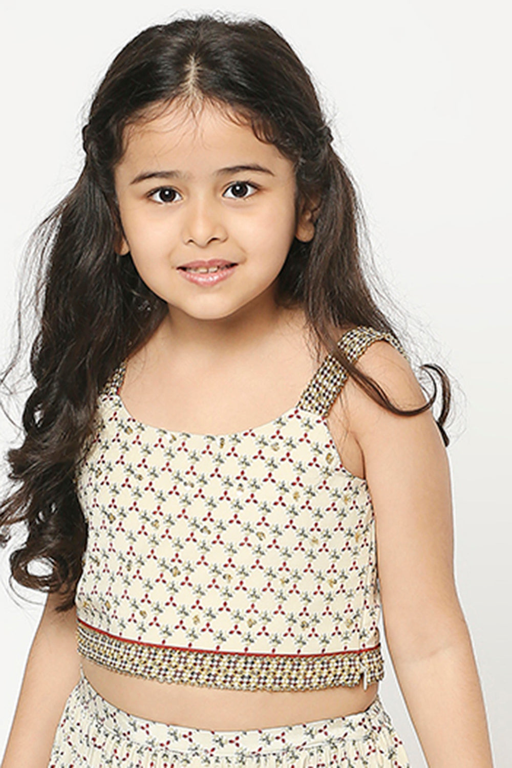 Applique Geometric Printed Lehenga Paired With Crop Top And Net Dupatta