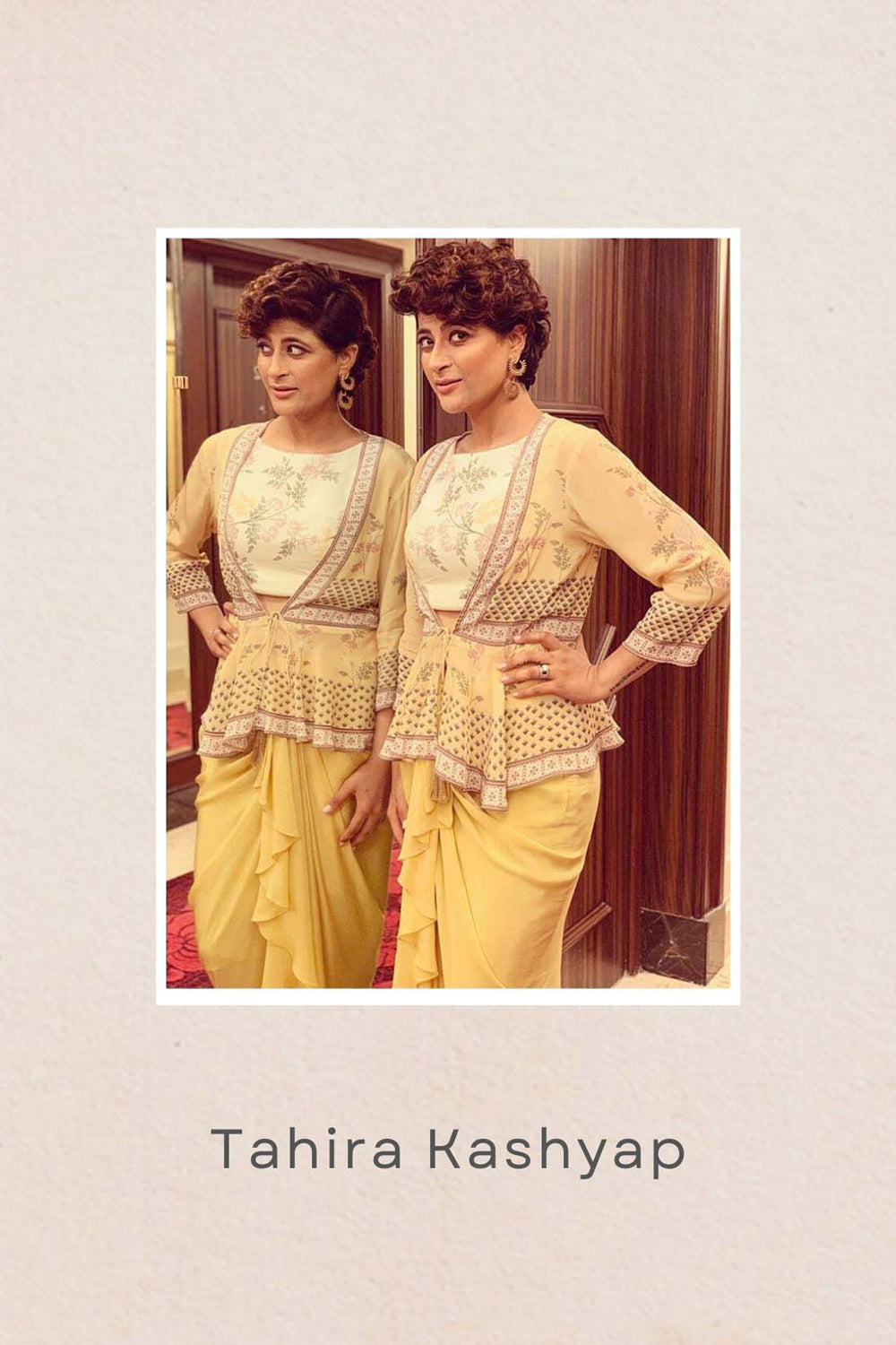 Yellow Windance Printed Crop Top And Drape Skirt Paired With Embellished Peplum Jacket In Crepe