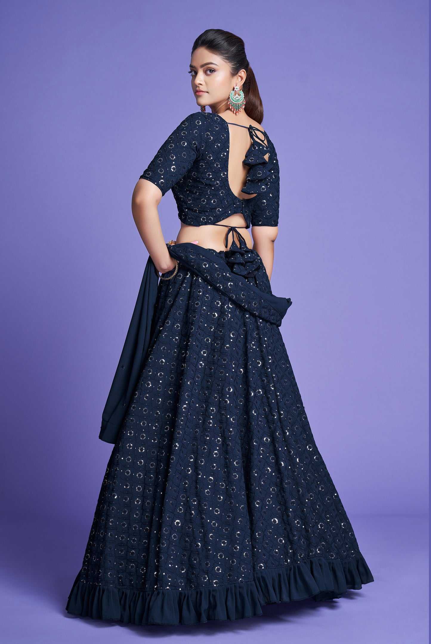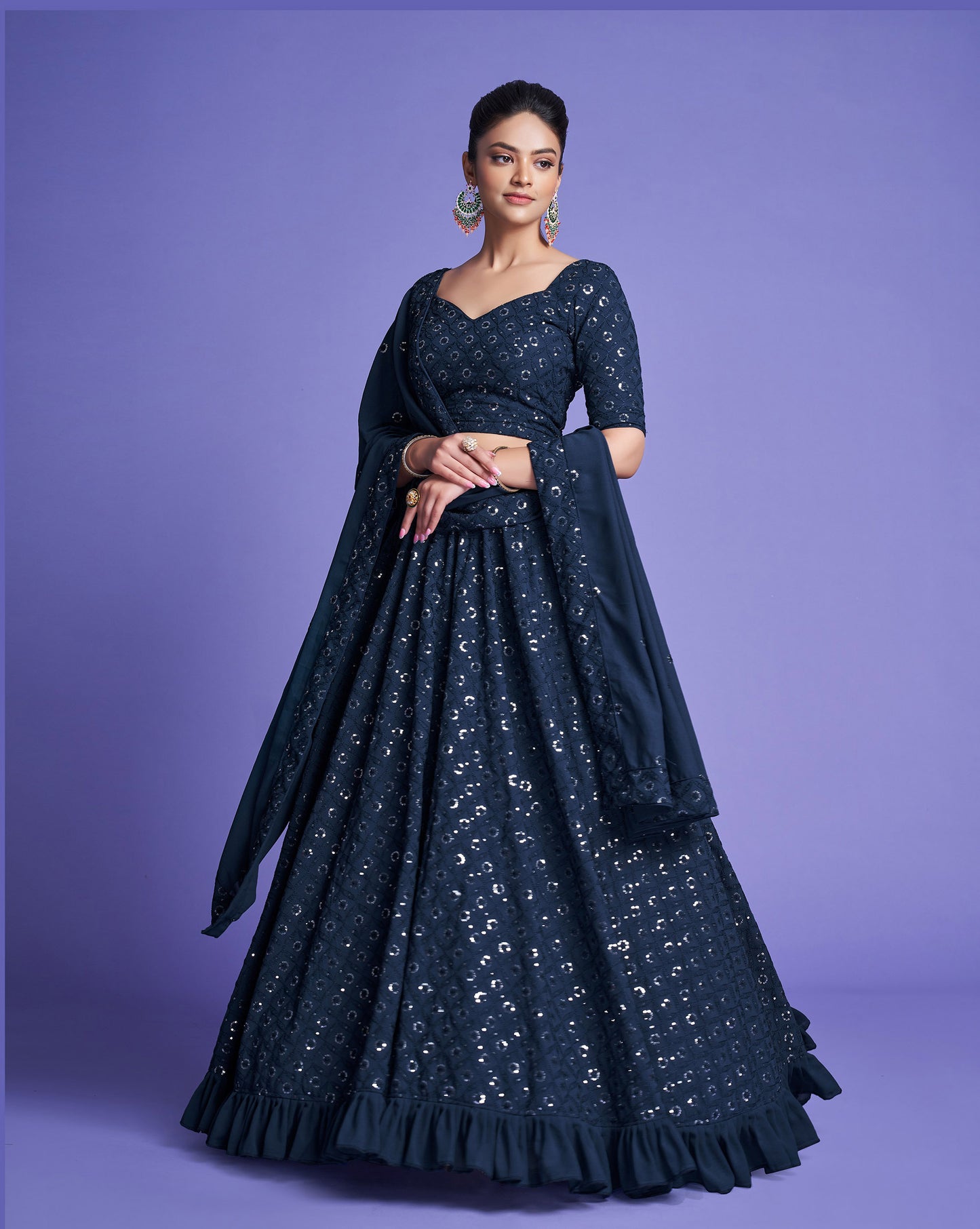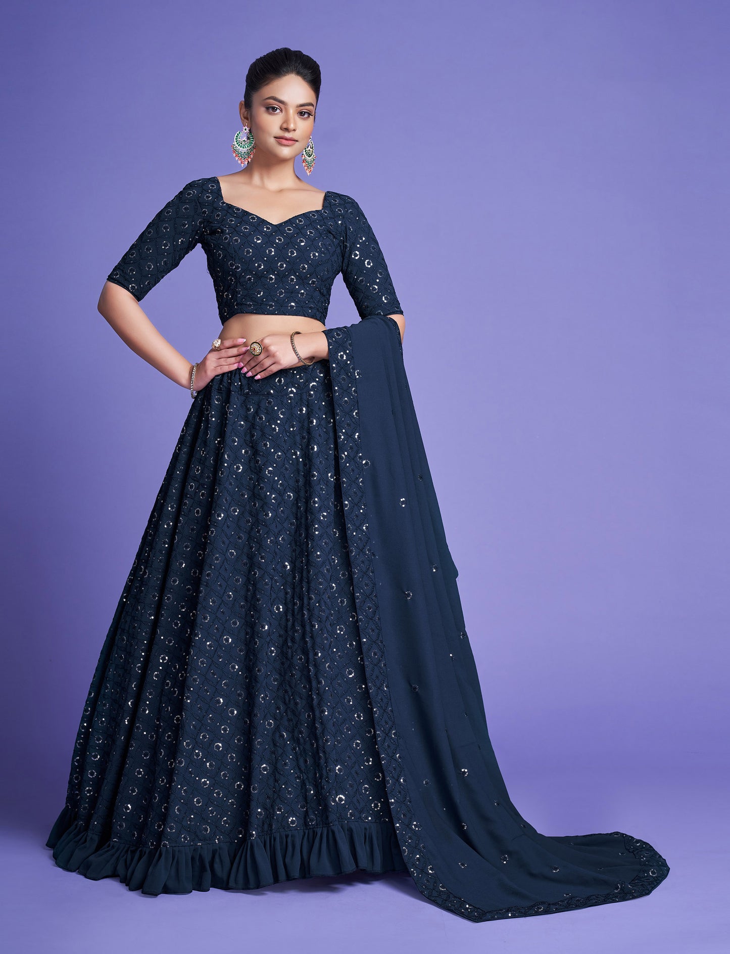 Teal Blue Diamond Georgette Sequins Work Bridesmaid Lehenga
