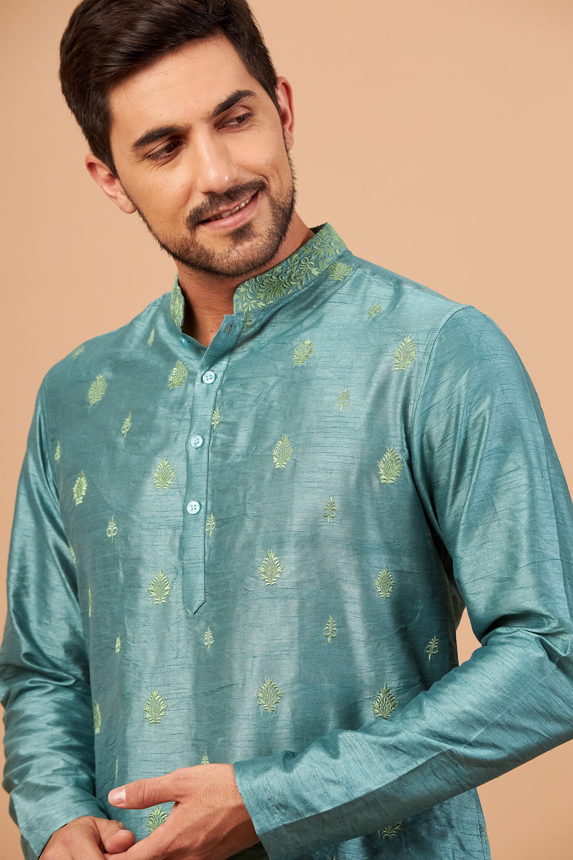 Featuring teal kurta in machine embroidery , embroidered all over the kurta. which makes you look sassy and fashion forward . It can be worn for multiple occasions,from casual outings to festive occasions .It can be paired with white or same colored bottoms.