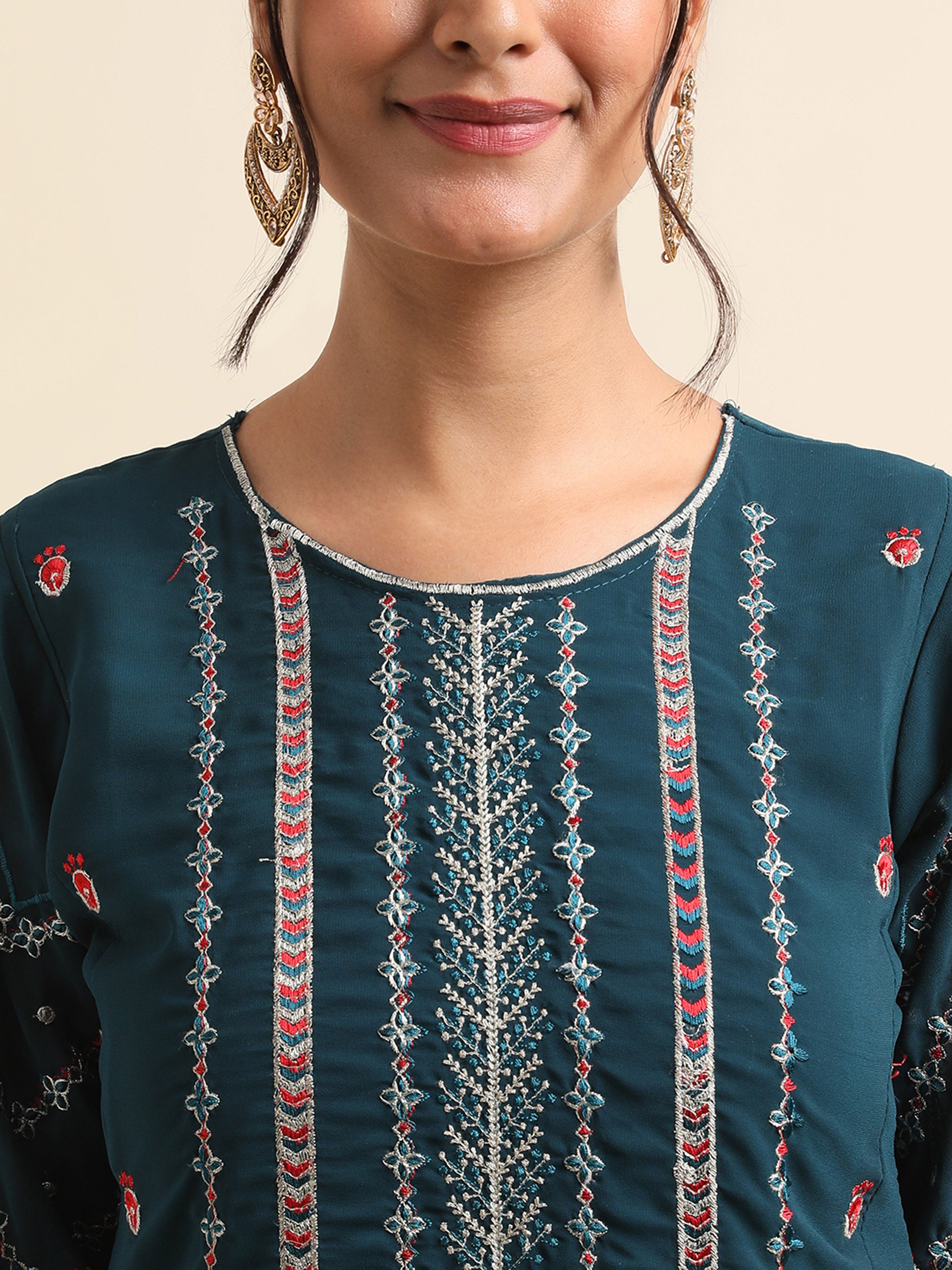 Teal zari embroidered Faux Georgette Surya pakistani suit