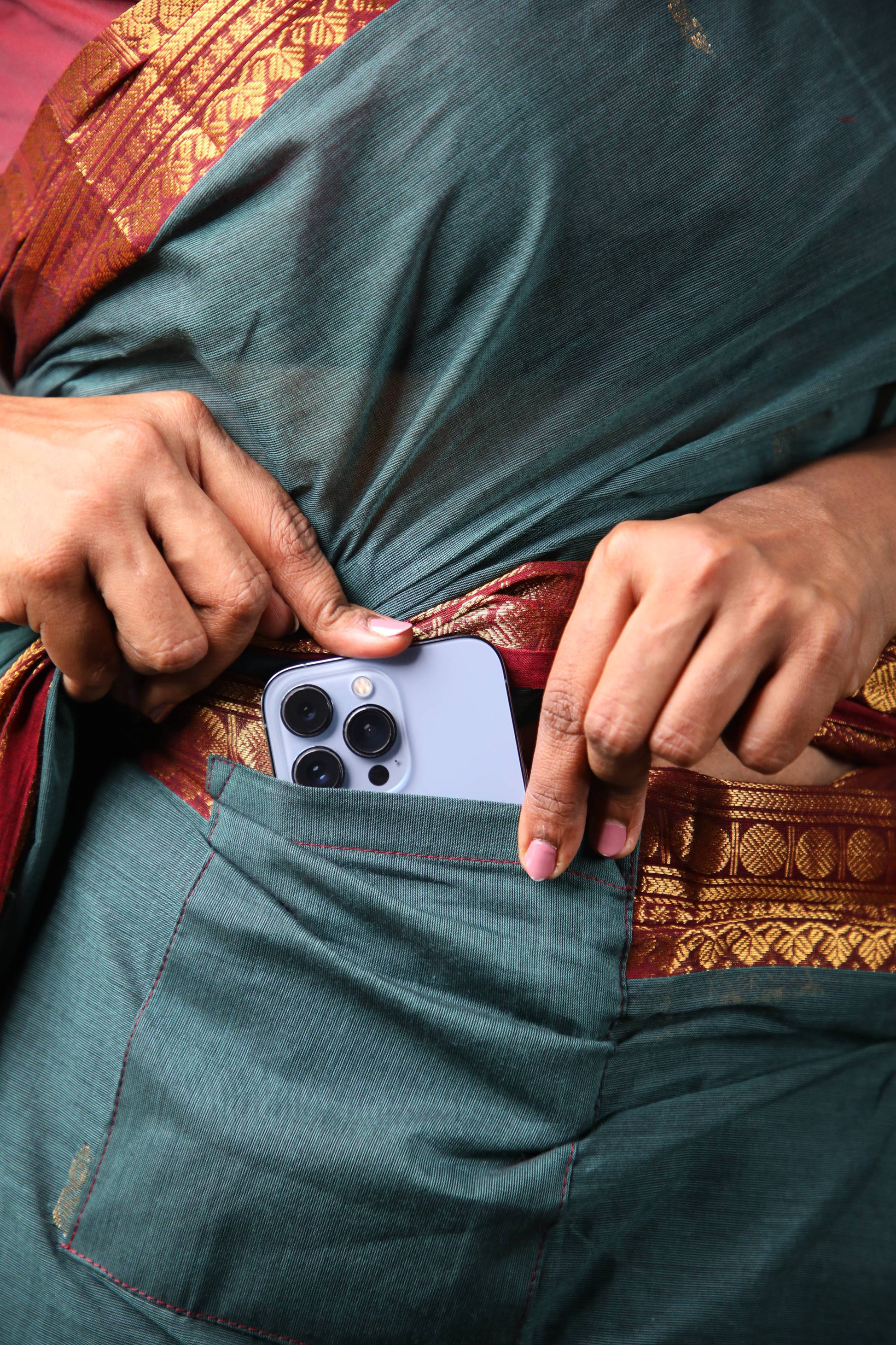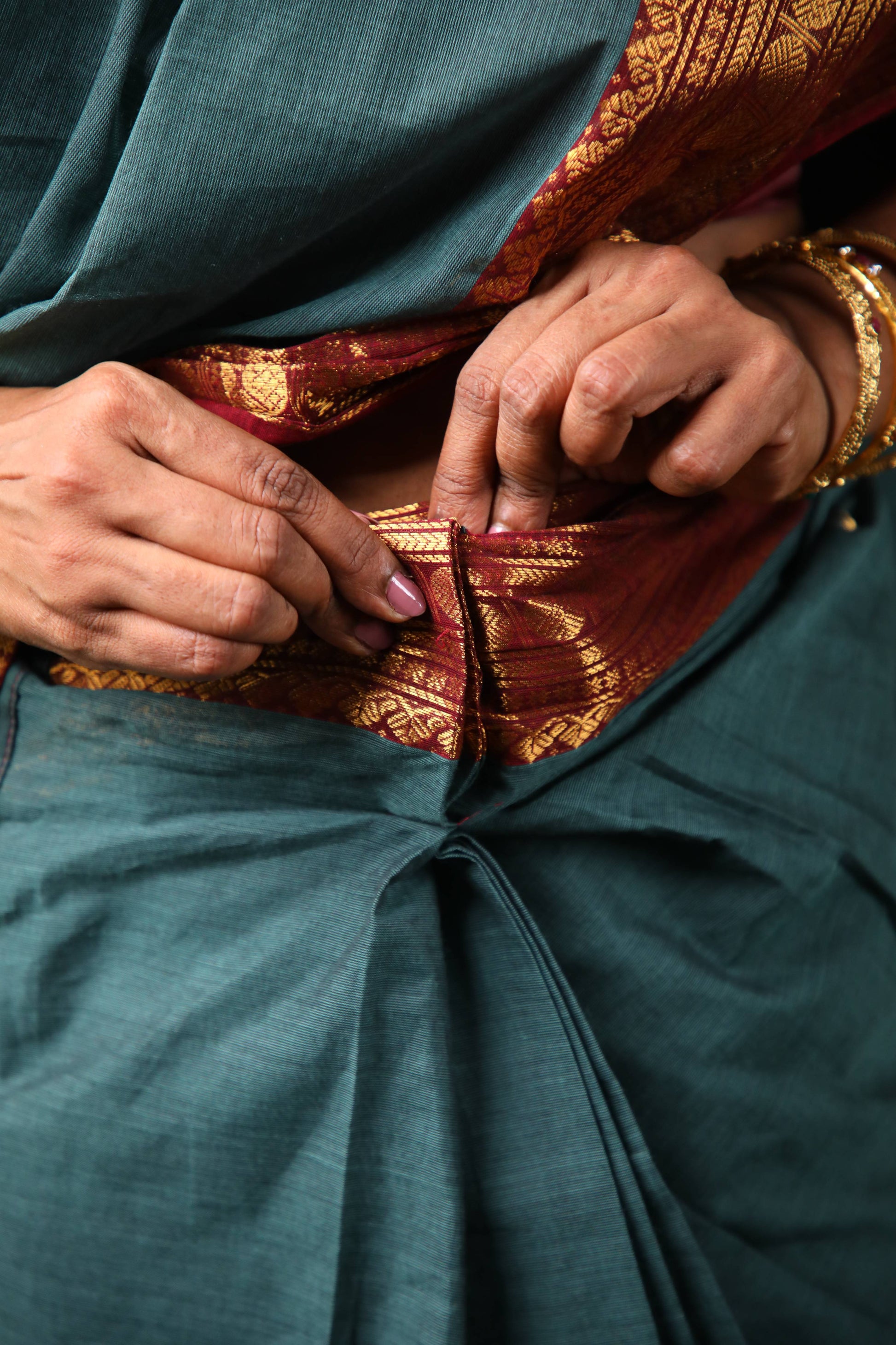 Varnam - 1 minute Ready-to-wear saree in Teal color in Kanchi Cotton
