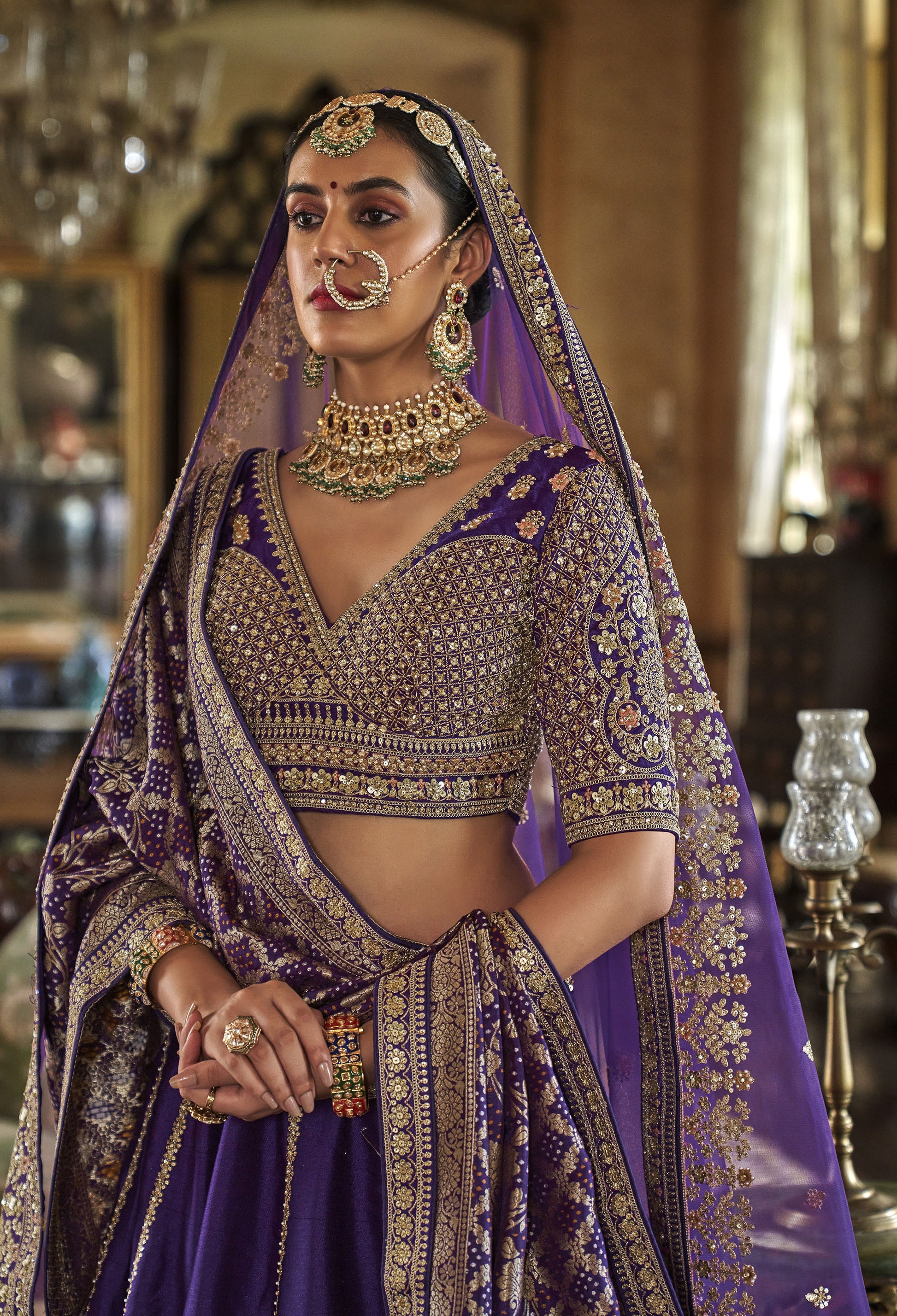 Violet Banarasi Silk Heavy Zari Embroidery Bridal Lehenga