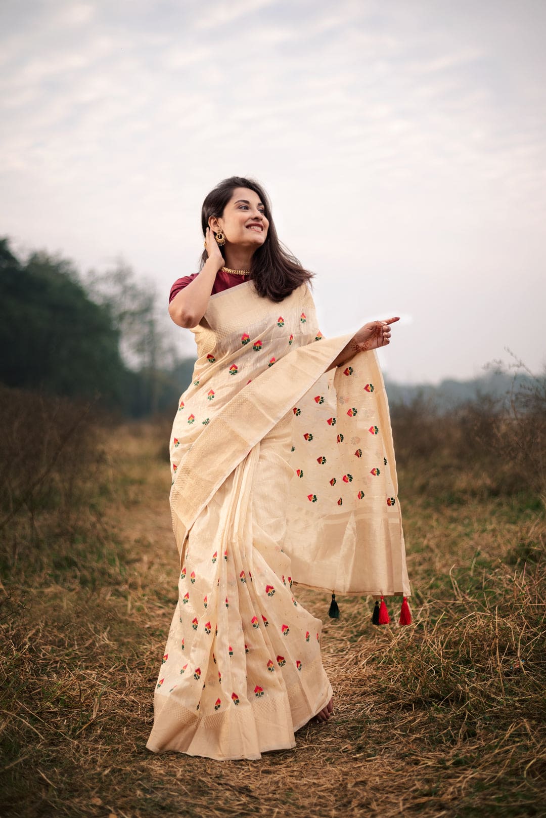 Vrindavan Cream Cotton Silk Handloom saree